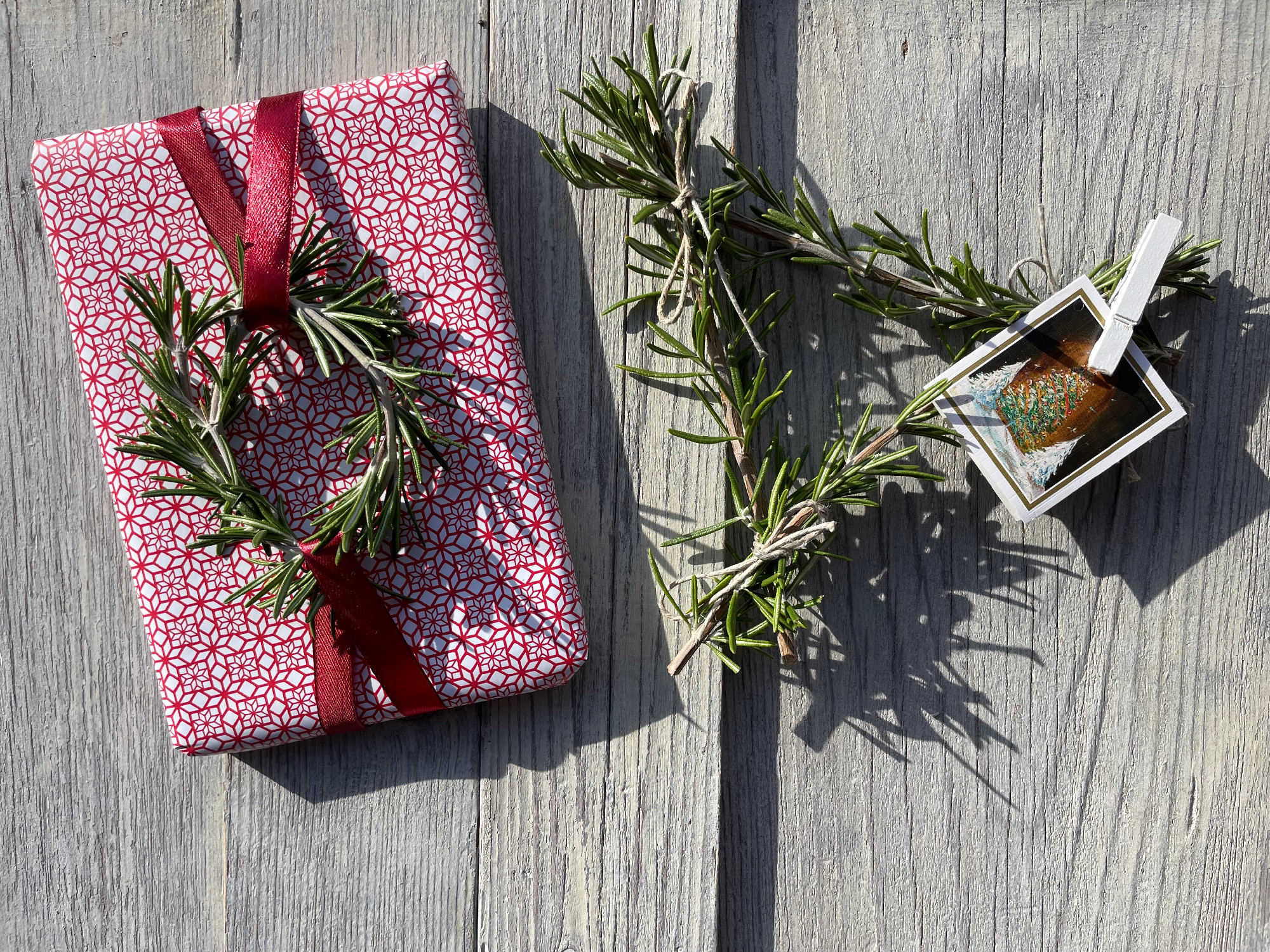 Aki viszont nem szeret kapkodni, érdemes előre elkészíteni ezeket a kis rozmaring-karikákat, amelyek elegánsan ünnepélyessé tesznek egy könyvet, egy palackot, egy dobozkát.
