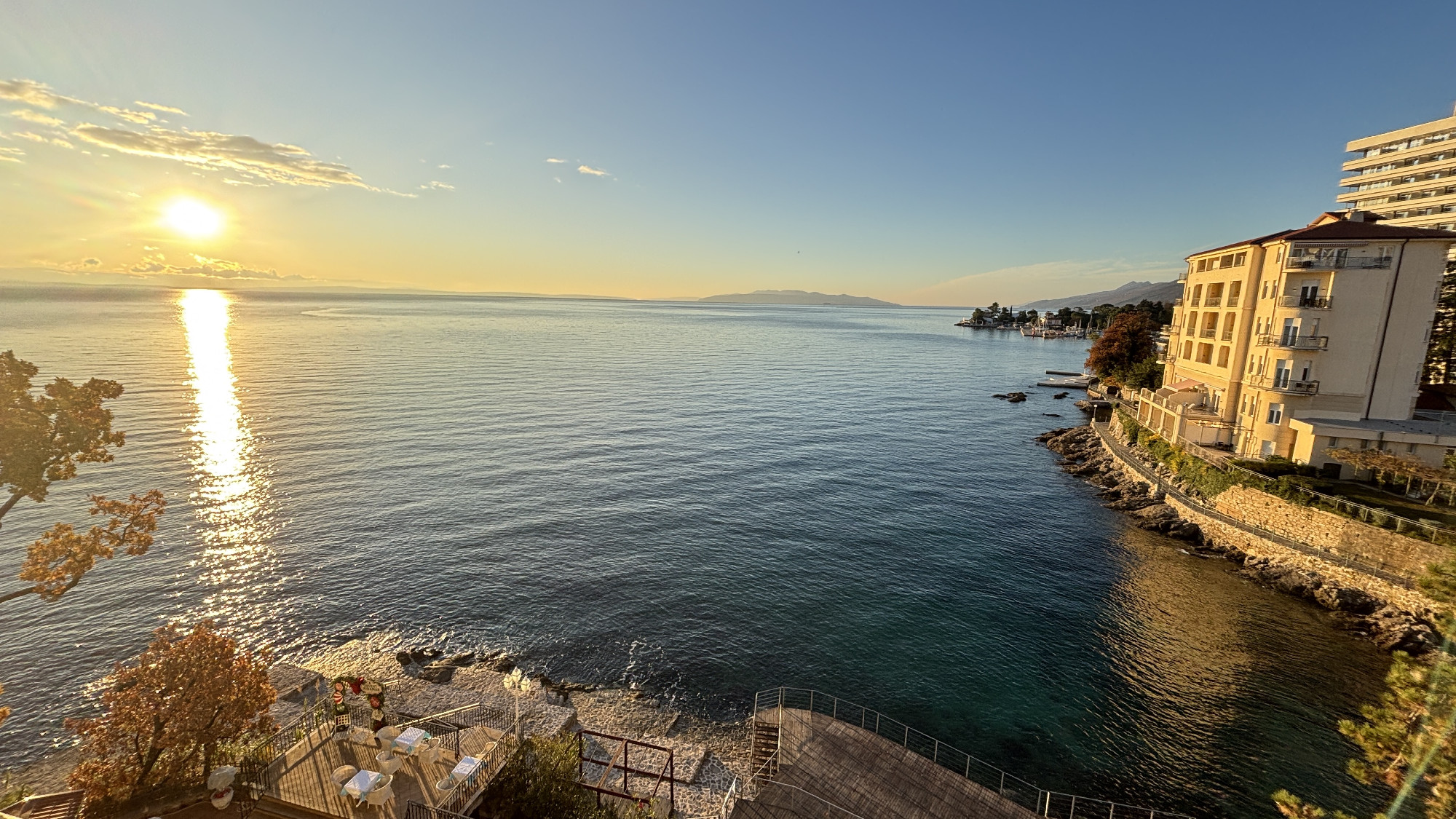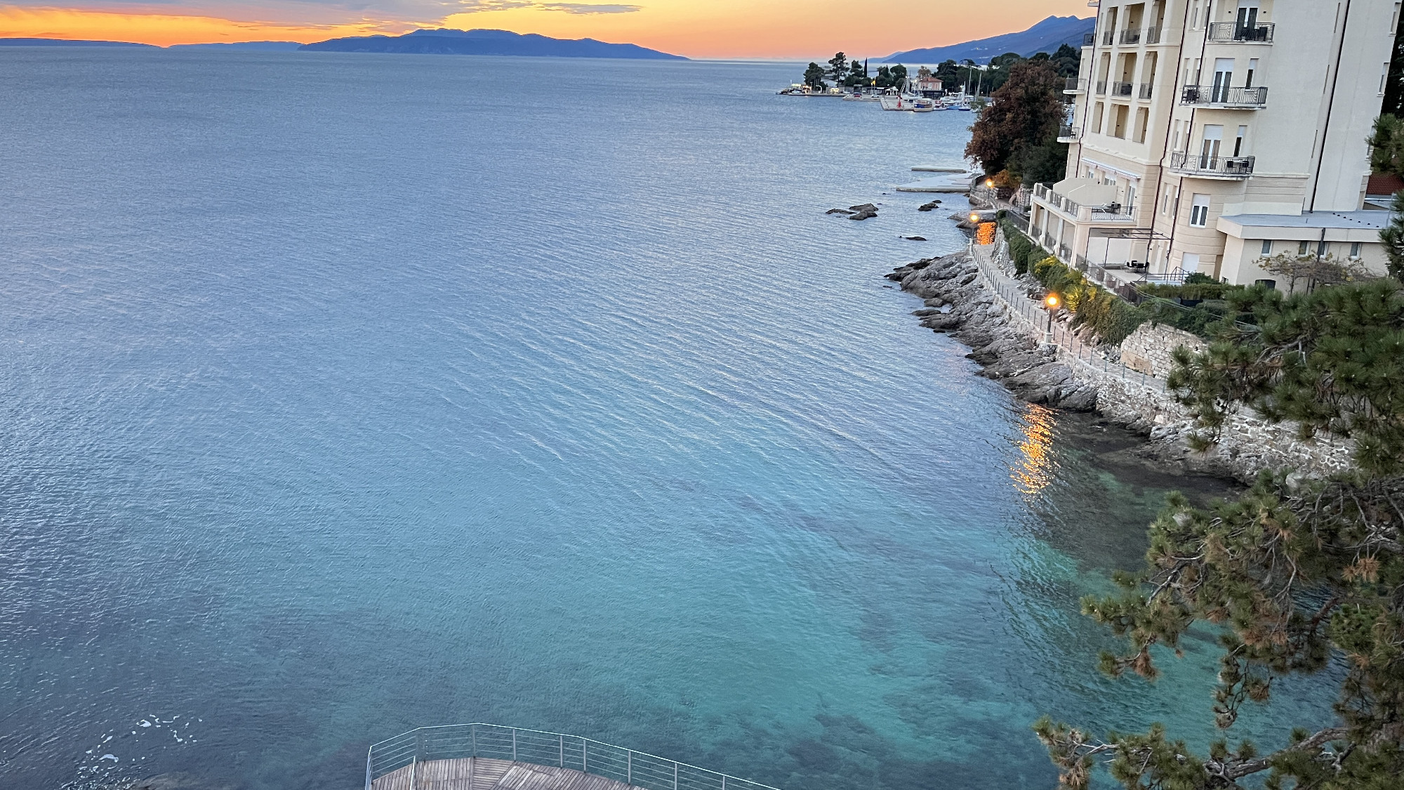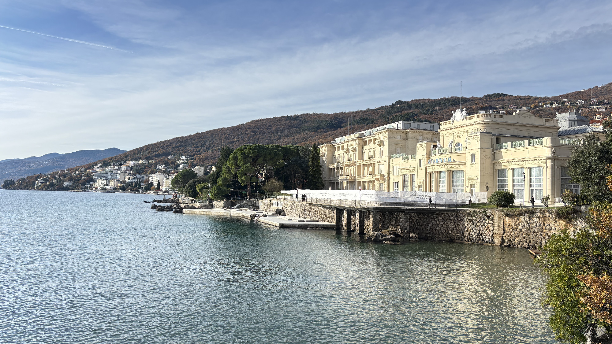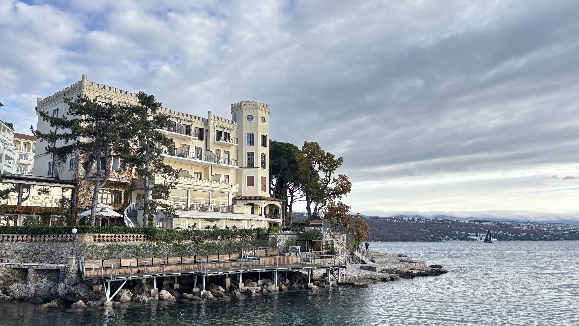 Advent idején utaztam Abbáziába. Nem kerestem nagy élményeket, egyszerűen csak vágytam a tenger csendjére. Ami valójában nem csend, de mégis. A Lungomare sétány Voloskot és Lovrant köti össze több mint 10 kilométer hosszan. Végig a parton halad, pici öblökkel, sziklákkal, kikötőkkel a tenger felől, és gyönyörű villákkal szegélyezve a hegy felőli oldalon. Az én tempómban ez egy kiadós 5-6 órás séta. A napsütéses 10-12 fokban egy szélmentes napon, egy ilyen helyen a tengerben gyönyörködni már-már ijesztően jó, az ember elkezd azon gondolkodni, hogy lehet ennyire mázlista. Ha végigmegyünk ezen a jól kiépített sétányon, tulajdonképpen Abbázia teljes történetét megismerhetjük.
