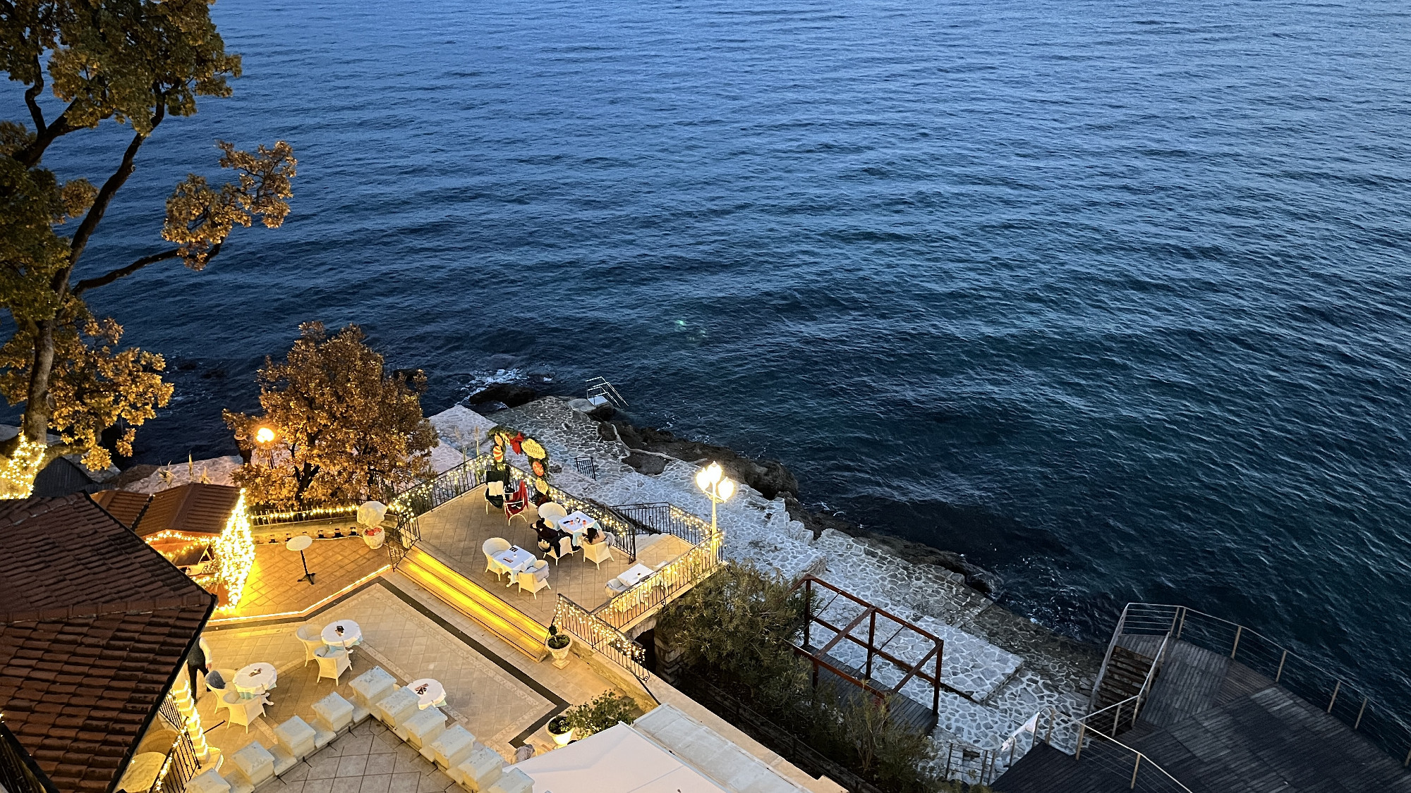 A fények, füzérek, karácsonyi dallamok estére ünneplőbe öltöztetik a várost, de mindezt sokkal halkabban, finomabban, mint nyáron bármi. Mintha mindenki tekintettel lenne a tenger téli lelkiállapotára, és nem akarná túlhangsúlyozni a saját díszeit. A város ünnepi fényei nem versenyeznek a tengerrel, ahogy beesteledik, tökéletesen kiegészítik azt.