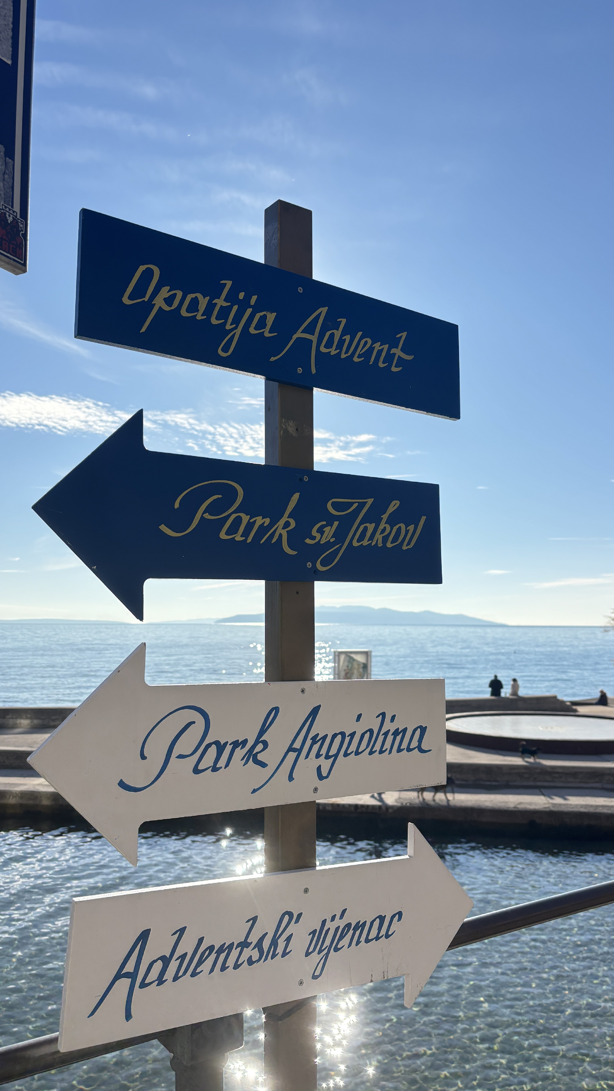 A téli tengerparton az ember nem akar rohanni. Szerencsés napokon, és ebből itt bőven akad, egyszerűen élvezi a napsütést és a tengert. Opatija adventkor is csodálatos. Van egy természetes eleganciája, ami minden évszakban jelen van. Ilyenkor hatványozottan, hiszen nincsenek zajos fürdőzők, úszógumi árusok, hömpölygő emberáradat. Mindenki nyugodt és mosolygós, még a Mikulásnapi fürdőzésre készülő "kutyakemény" férfiak is.