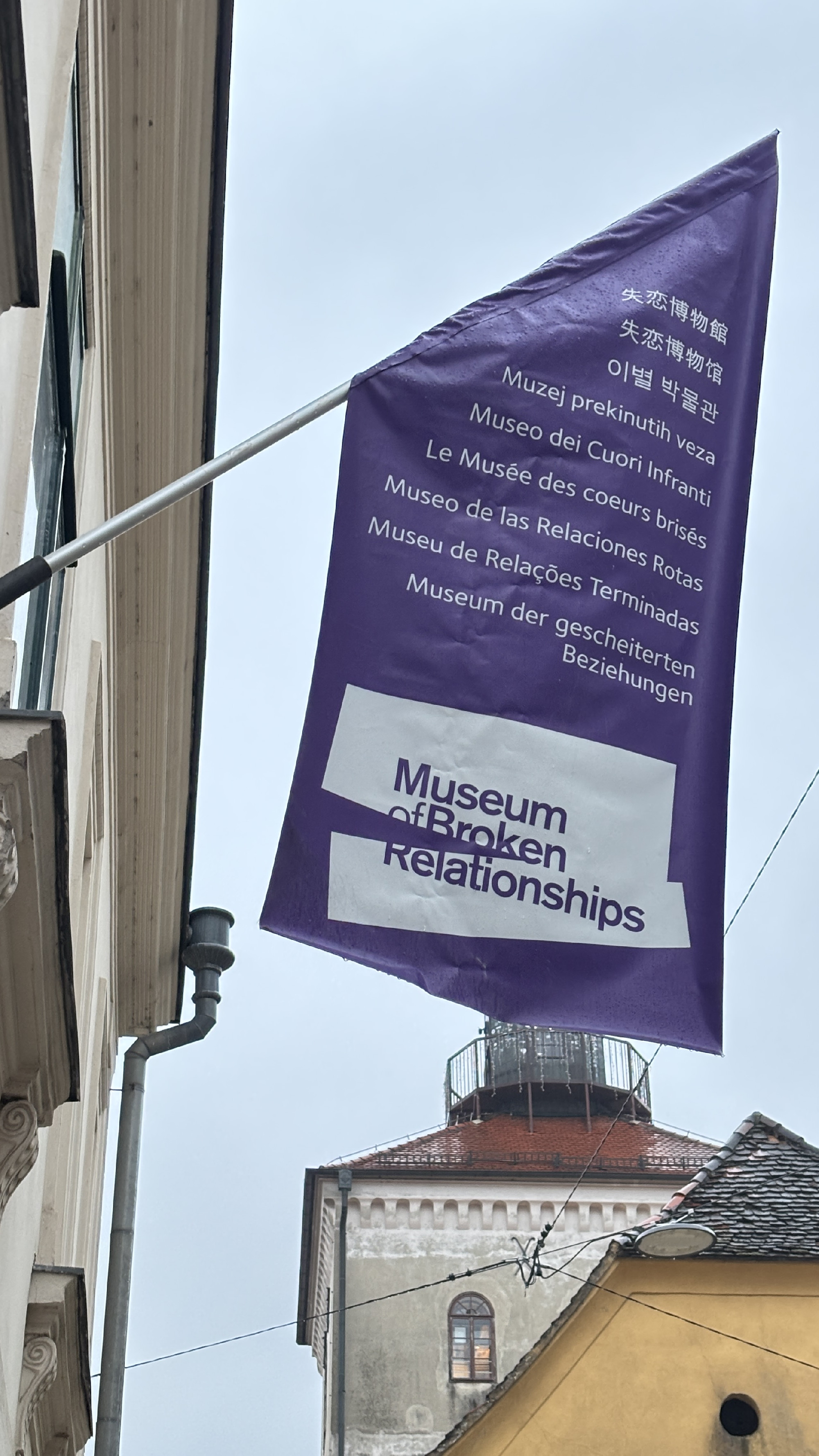 A földrengés miatt számos nagy múzeum még ma sem látogatható, viszont igazán nagy élmény volt a számtalan kis “múzeumocska” a környéken. Találtam Szelfi-múzeumot, Másnaposság múzeumot, de megtaláltam a Horvát Naiv Művészeti Múzeumot is, ami a világon a legrégebbi ilyen múzeum, 1900 elképesztően gyönyörködtető alkotással. Néhány kapuval odébb pedig egy egészen furcsa gyöngyszemre bukkantam. A Museum of Broken Relationships(Megtört Kapcsolatok Múzeuma) nem egy hétköznapi hely.
