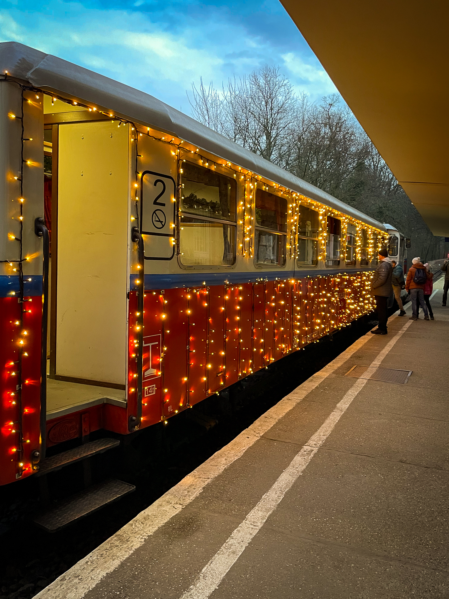 Nekem, mint egykori úttörővasutasnak, kihagyhatatlan program karácsony előtt a gyermekvasút. Ilyenkor a kocsik kívül-belül ünnepi díszbe öltözve zakatolnak át a Budai hegység erdein. Van külön Mikulásjárat, ahol a nagyszakállú is felül az egyik vagonba, és ilyenkor határtalan a gyerekek öröme, hogy együtt utazhatnak a messziről jött Mikulással. Tavaly az egyik Mk45-ös dízelmozdony és a feldíszített utasterű „debreceni” kocsi teljesen egyedi díszkivilágítást kapott. Ha szerencsénk van, kifoghatjuk a nosztalgiagőzöst, ami tényleg úgy visz végig az erdőn füstfelhőt pöfögve, mintha a mesében járnánk.
