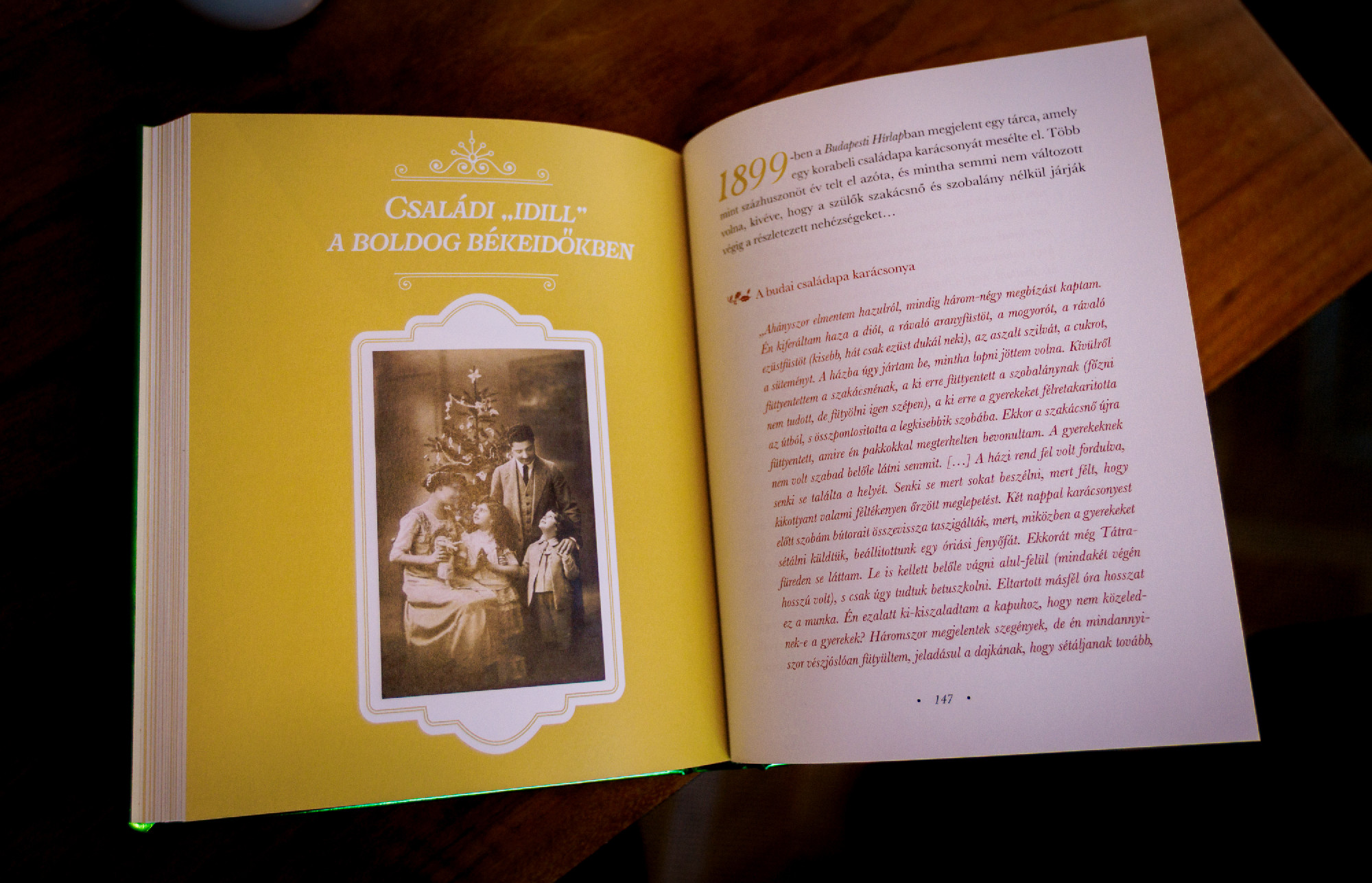 Sokat gondolkoztunk a kiadóval, megkérdeztem nekem fontos embereket, mert valamilyen magával ragadó, hangzatos címet szerettünk volna, ami idézi még a karácsonyi hangulatot és a békeidőket. Így a „ródlizás és bejgliverseny” is képbe jött, de aztán végül a szaloncukor és az angyalhaj mellett döntöttünk. Ez egy kicsit magában hordozza az ünnep különlegességét és azt is, hogy mennyi apró részlet tárul fel a könyvben.