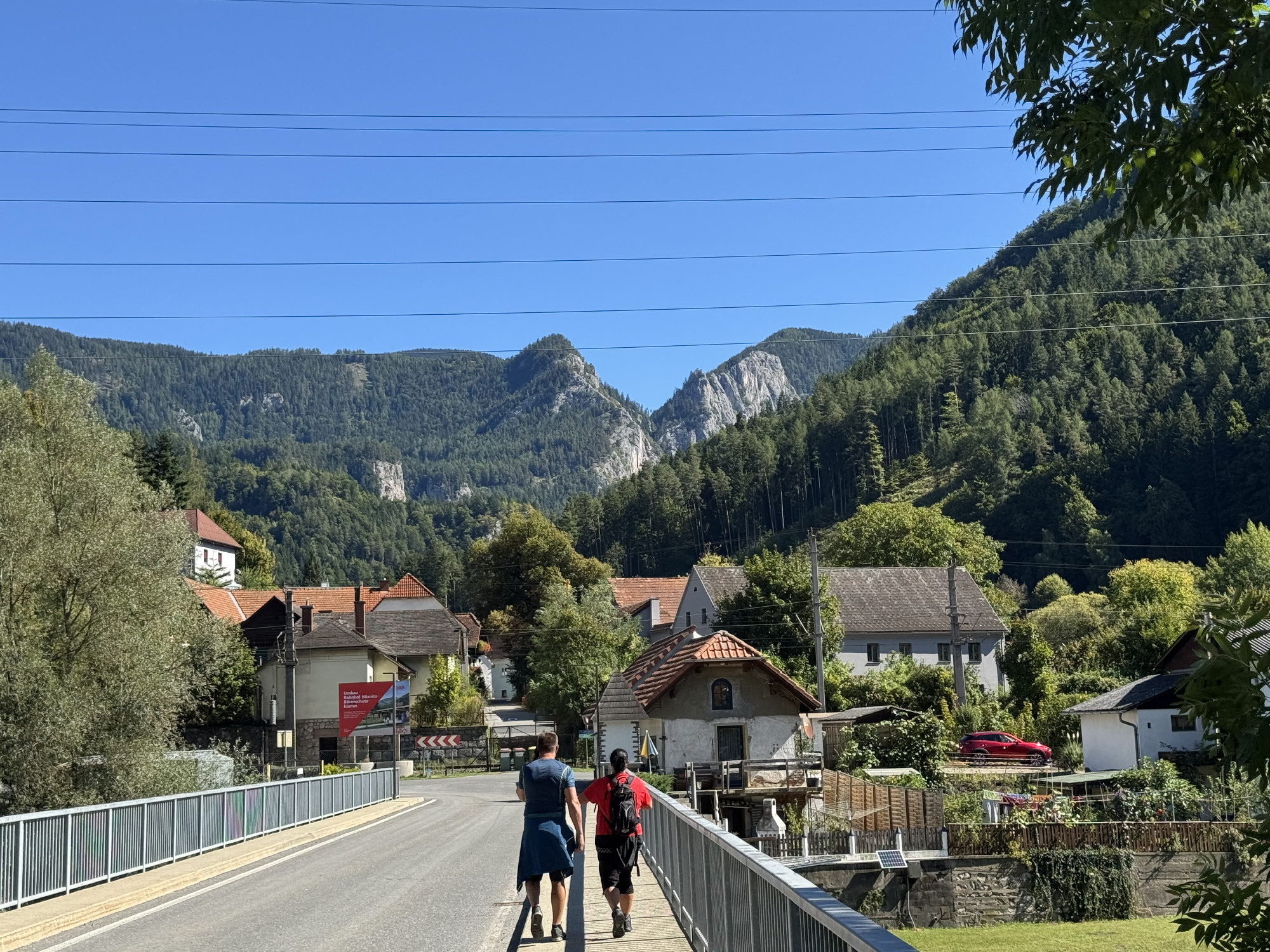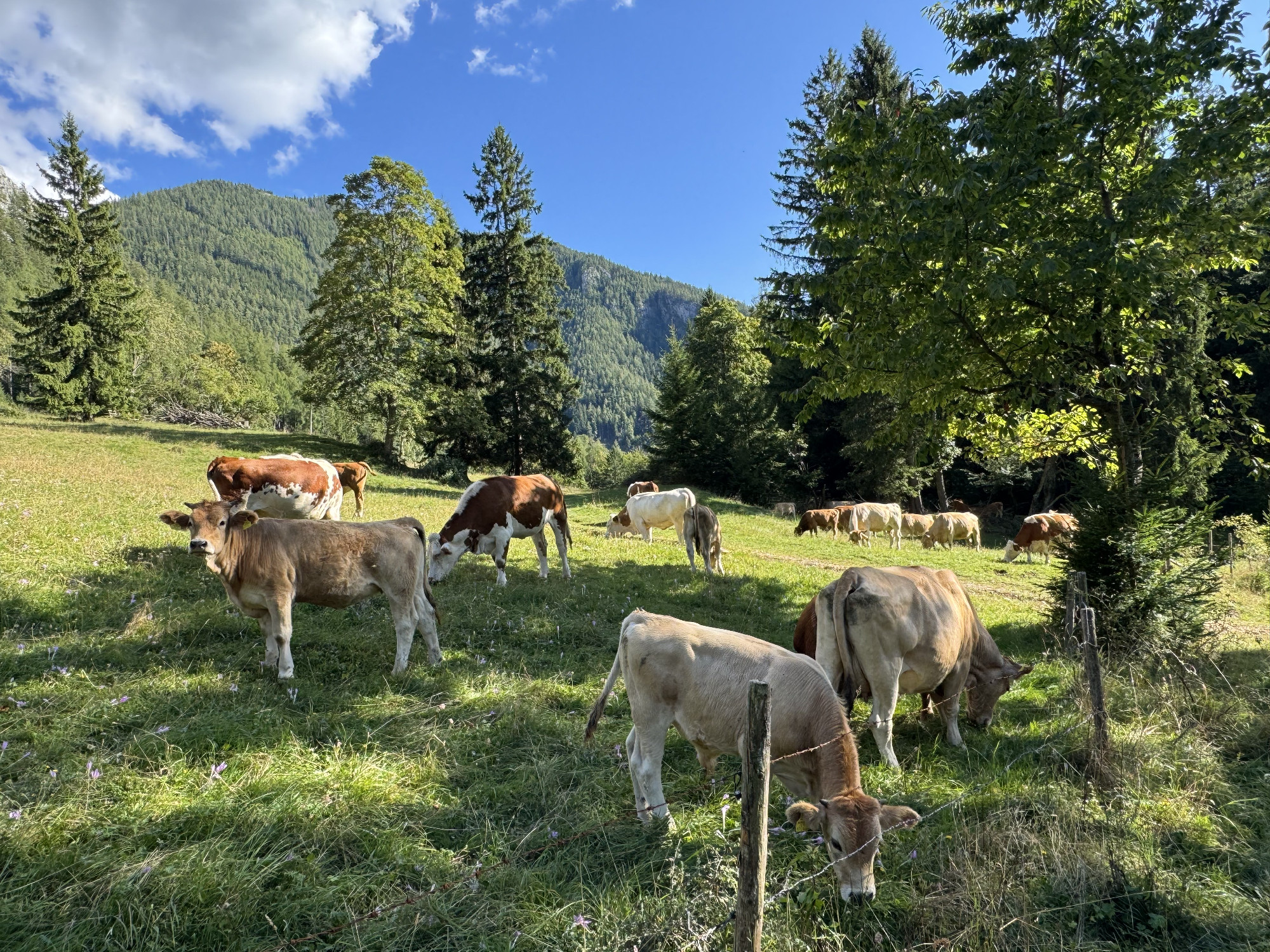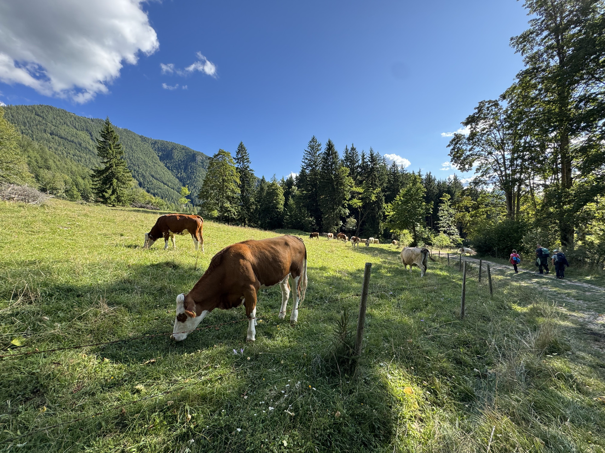 A Mura partján megbúvó hangulatos falucskát magunk mögött hagyva először legelők mellett vezet utunk egy széles aszfaltcsíkon, majd a Hubert Grassauer vendéglátóhely mellet elhaladva lépünk be az erdőbe, fenyvesek és bükkösök