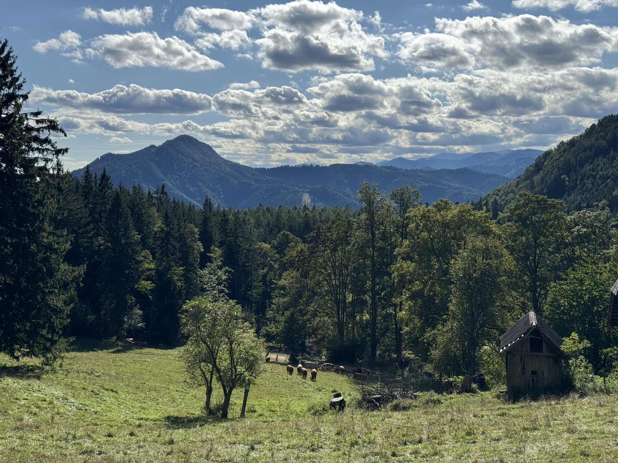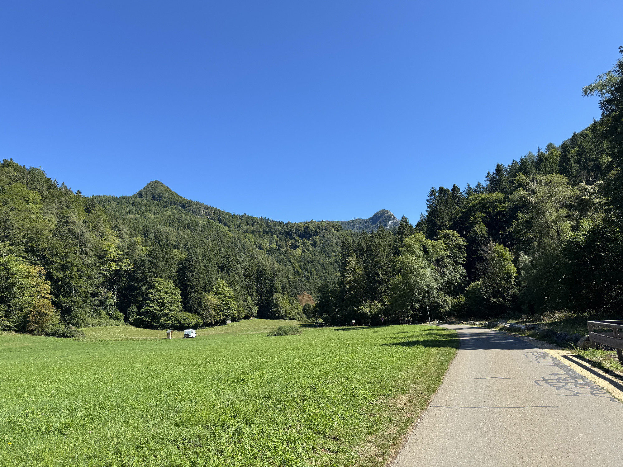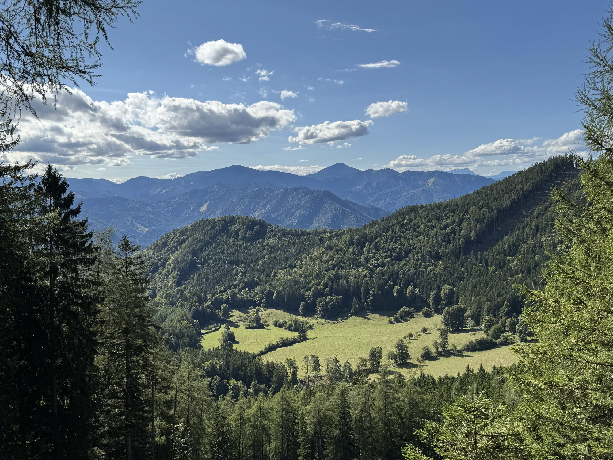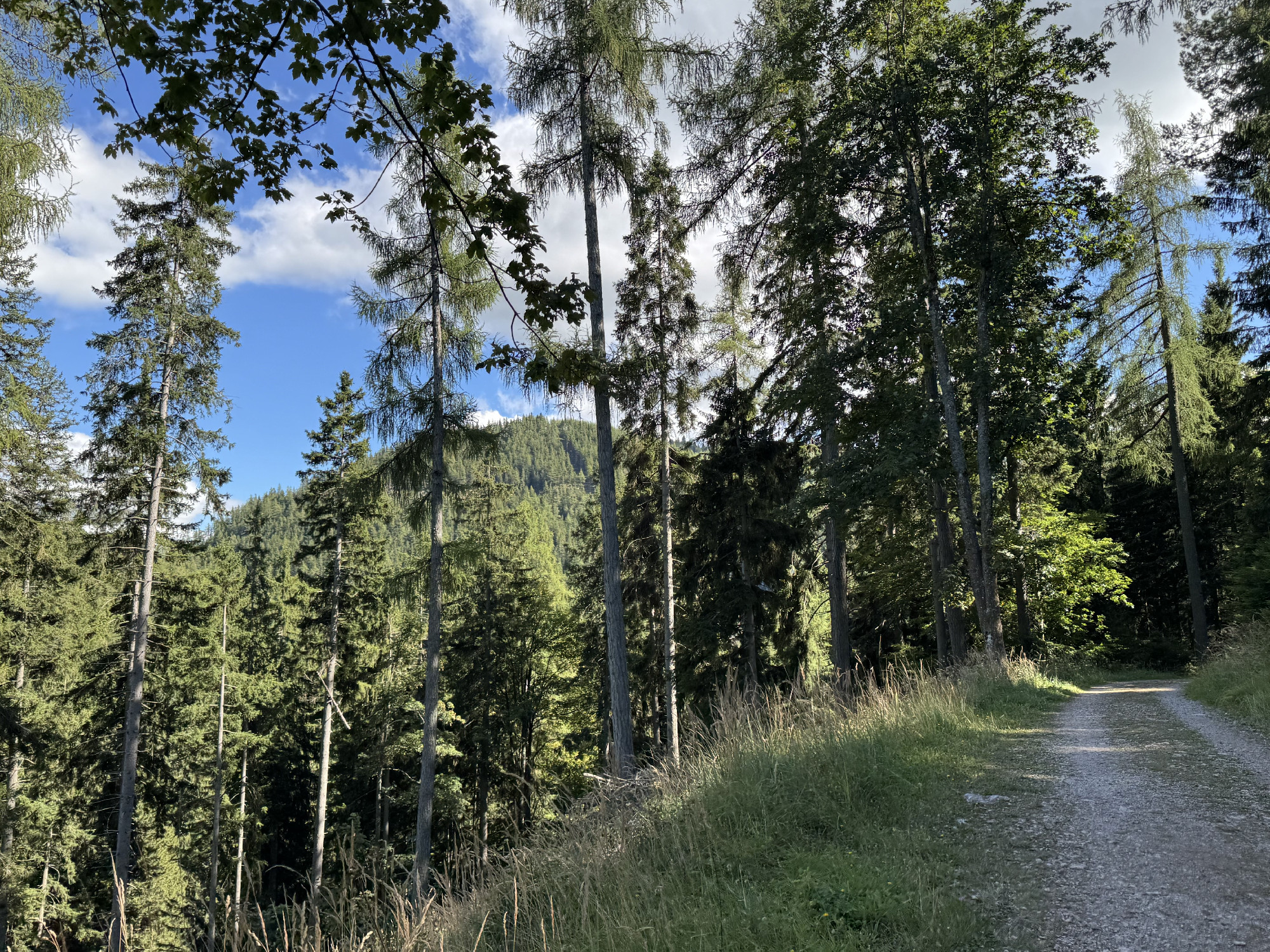 A Mura partján megbúvó hangulatos falucskát magunk mögött hagyva először legelők mellett vezet utunk egy széles aszfaltcsíkon, majd a Hubert Grassauer vendéglátóhely mellet elhaladva lépünk be az erdőbe, fenyvesek és bükkösök
