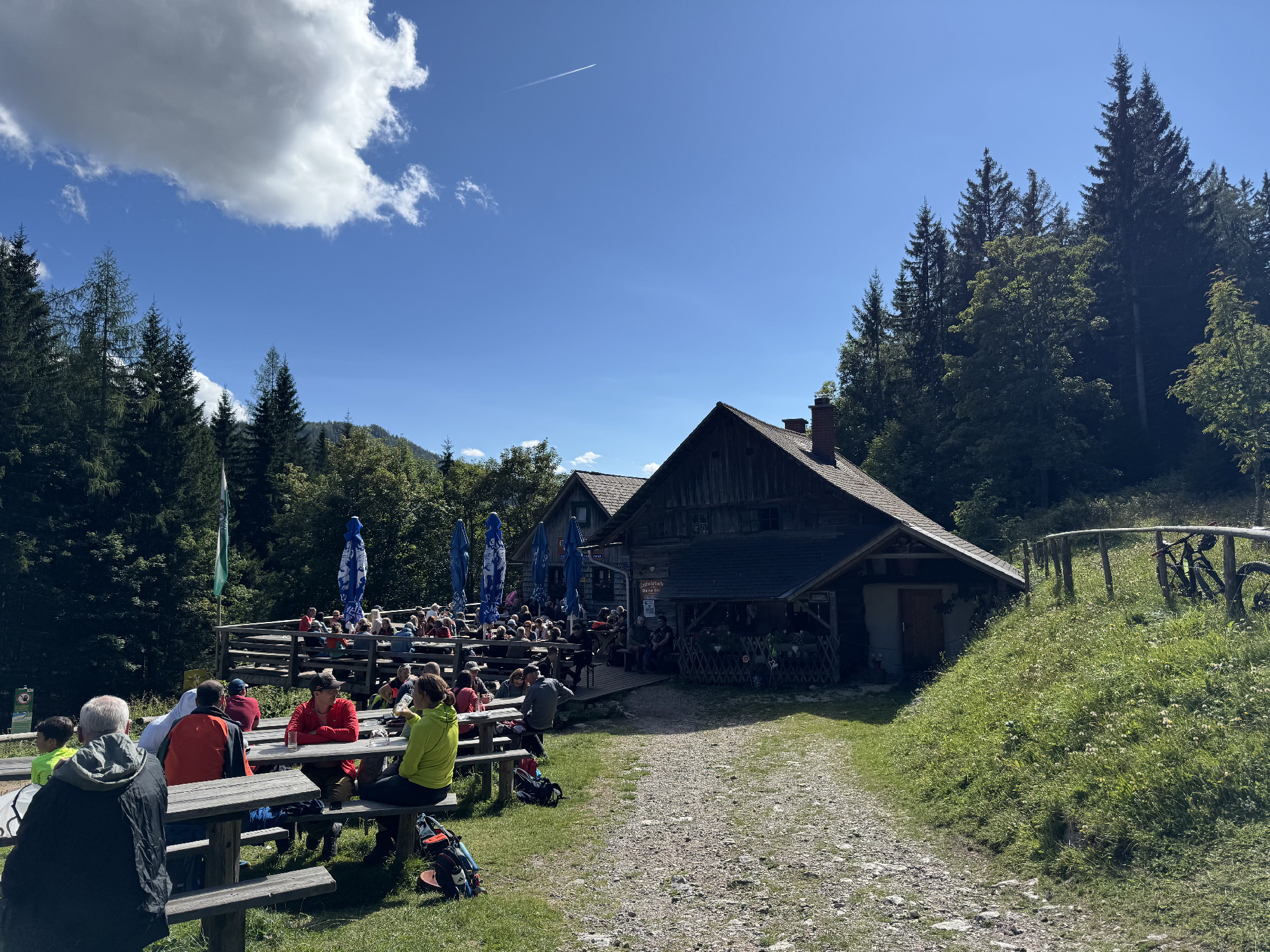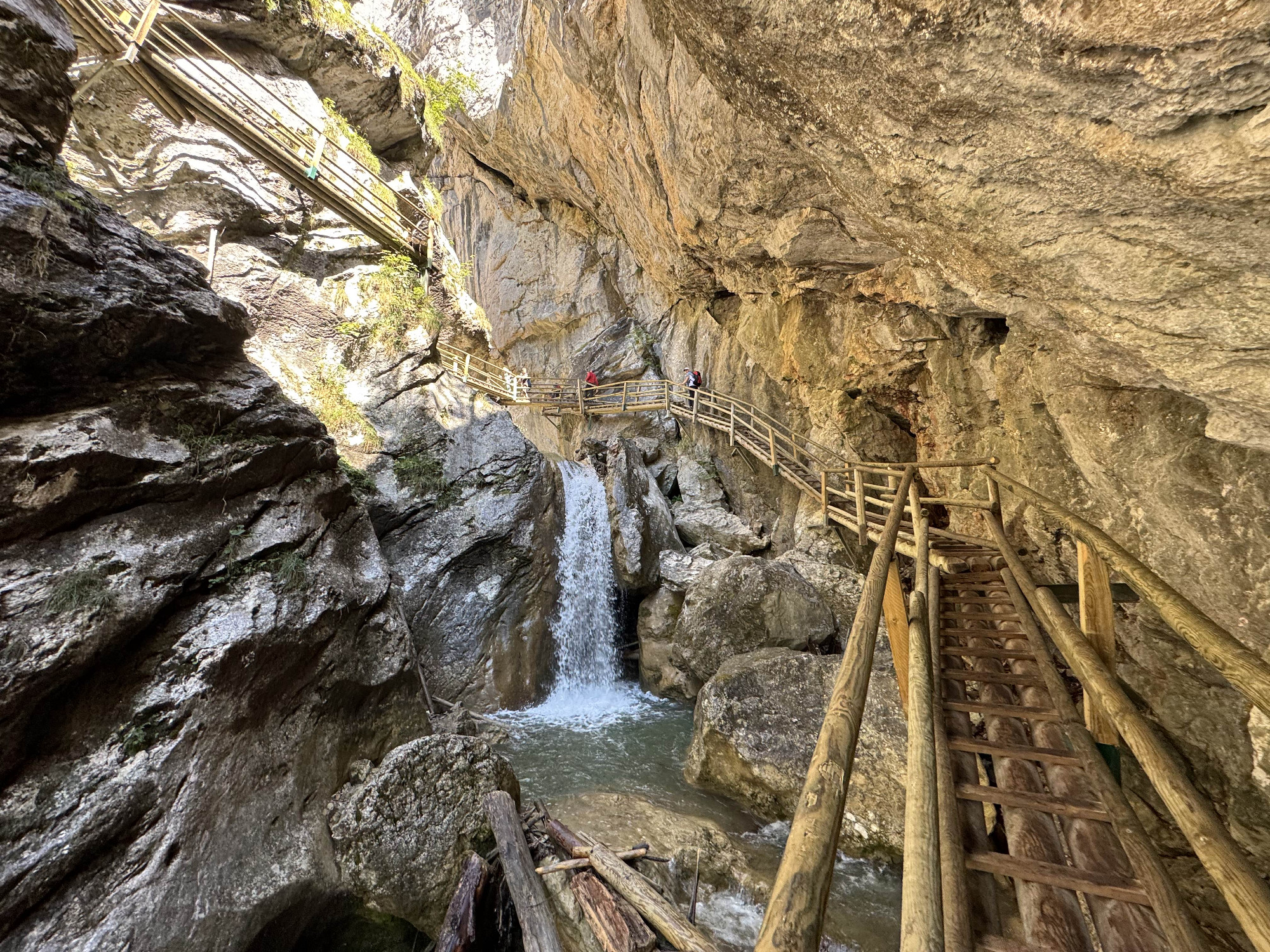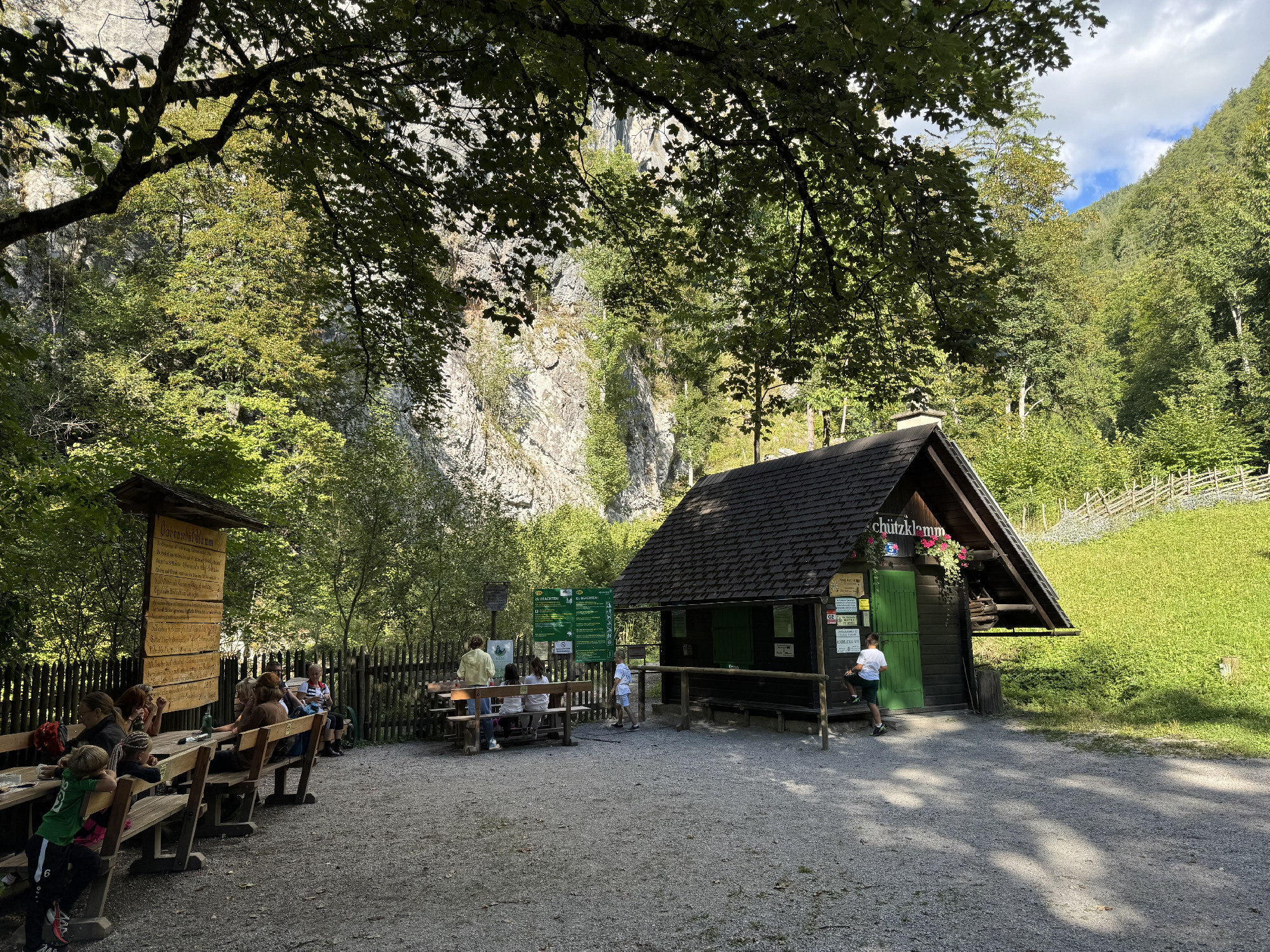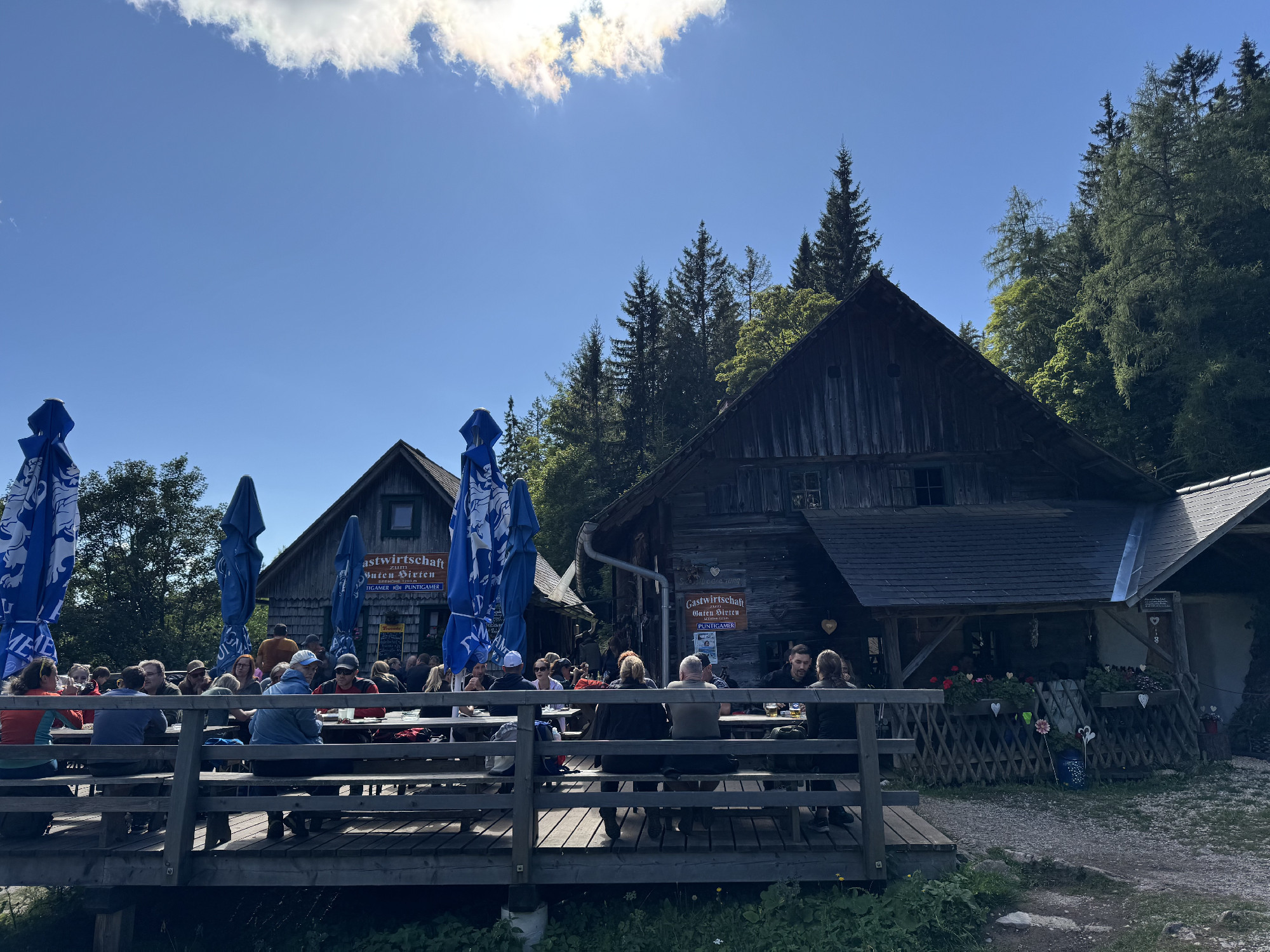 Kilométerben mérve nem túl hosszú, ám erőpróbában annál inkább gazdag szurdoktúránk egy combos lezárás után ér véget, majd a Jópásztor menedékházhoz (Almgasthaus Guter Hirte) érkezve fújhatjuk ki magunkat, gyönyörű alpesi