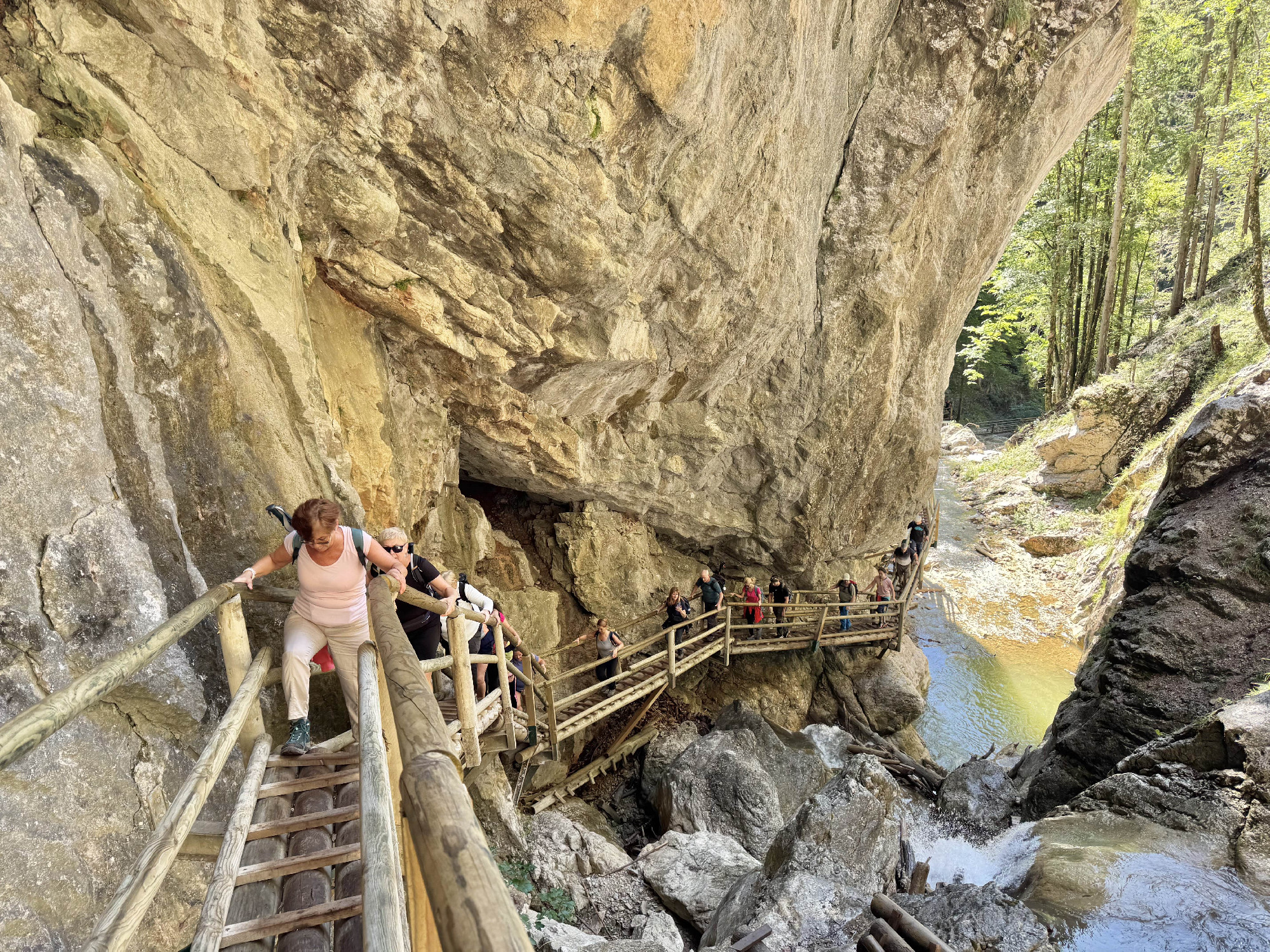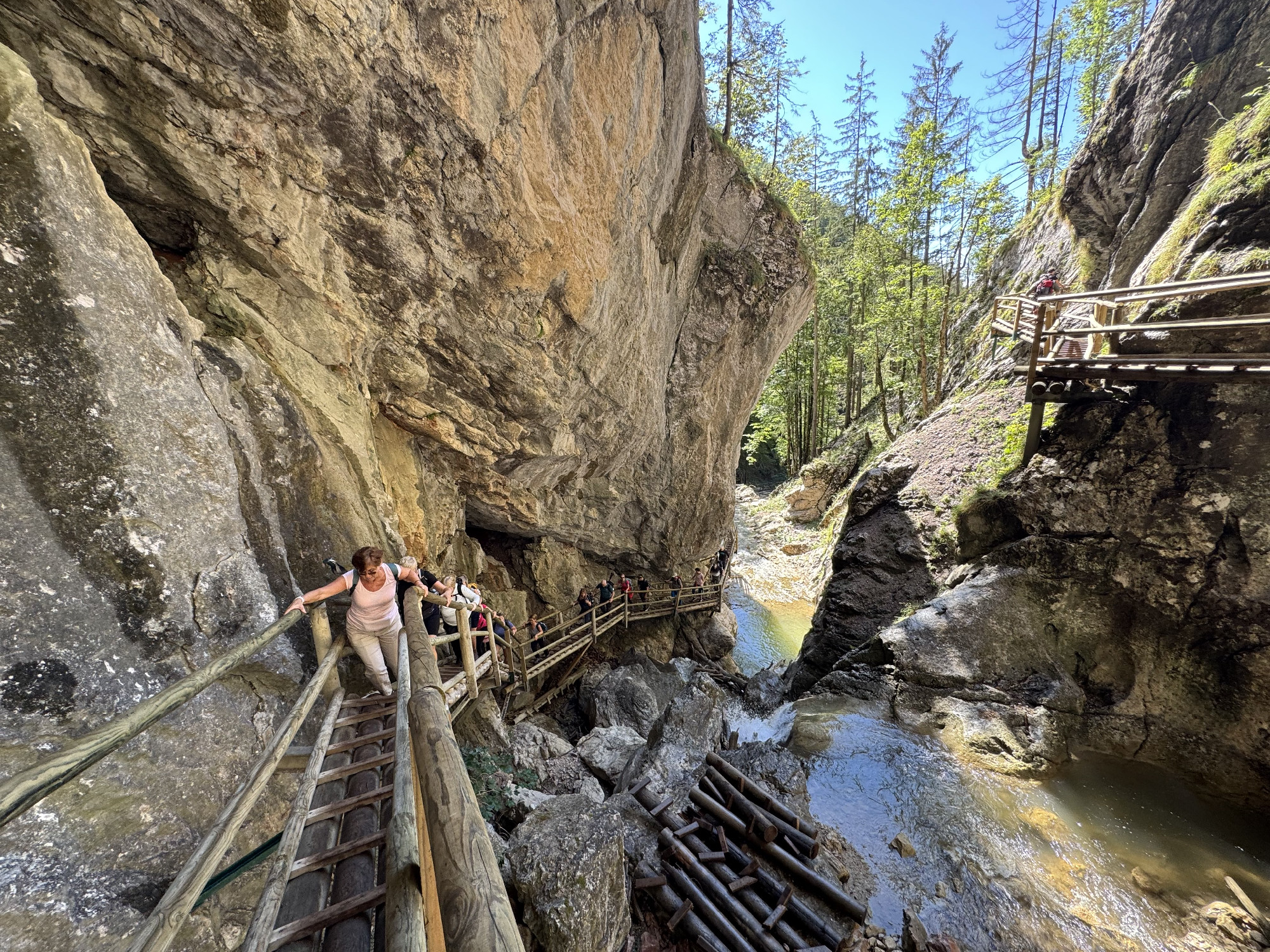 A szurdokba vezető több, mint kétezer, olykor erősen meredek lépcsőfok nem csak erőpróba, hanem egyfajta utazás is, mind fizikai, mind lelki síkon. A fából ácsolt hidak, létrák és korlátok néhol a vízesések fölött „lebegnek”, máskor a sziklafalhoz simulnak, mintha szinte részei lennének a hegynek, miközben alattunk, szédítő mélységben robog a patak. Mivel a technikai elemek sokszor nedvesek, akár csúszósak is lehetnek, az ember ösztönösen figyel minden lépésre – ám közben mégis teljesen elragadja a látvány, hiszen a természet alkotta környezet egyszerűen lélegzetelállító és minden pillantás újabb élményt kínál.