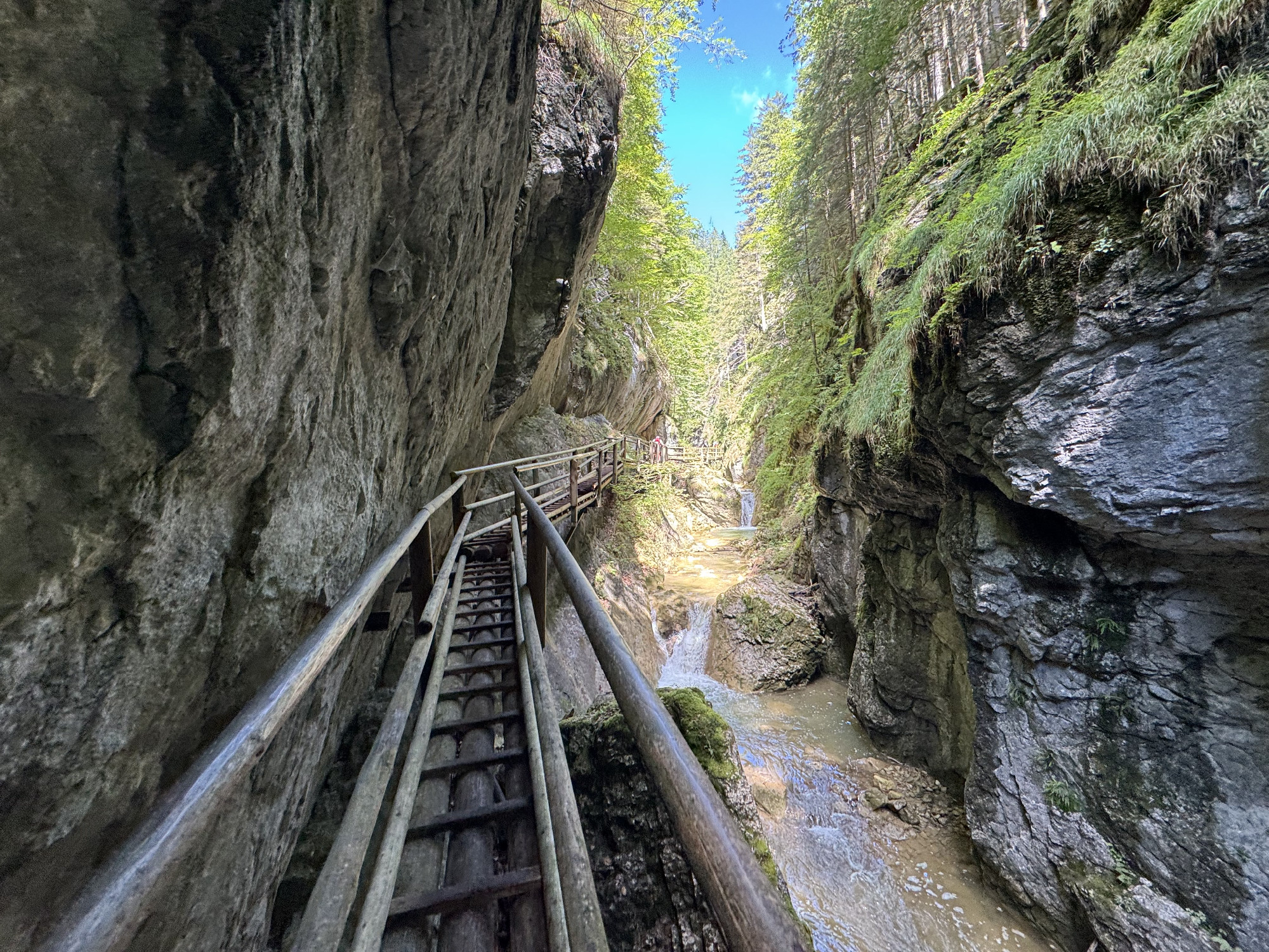 A szoros kezdeti szakaszában még csak „kóstolgatjuk” a ránk váró, közelgő élményeket egy-egy zúgó vagy kisebb vízesés, néhány rövidebb létra, híd vagy palló formájában, majd az utolsó visszafordulási lehetőségénél elénk tárul a szédítő hasadék „szája”: több száz méter magas, a nap fényében szinte világító kőfalak közé ékelődött sziklasikátor, melynek közepén aprócska, szűk lépcsősor vezet meredeken felfelé, a végét nem is látni lentről. Olyan, mintha az ember Gulliver liliputi utazását élné át a valóságban. A szurdokba való belépés előtt érdemes elolvasni a helyi tájékoztatást (angol és német nyelven áll rendelkezésre, de sok a piktogram), majd, ha ezek alapján is készen állunk meghódítani tájat, kezdődhet a kaland!