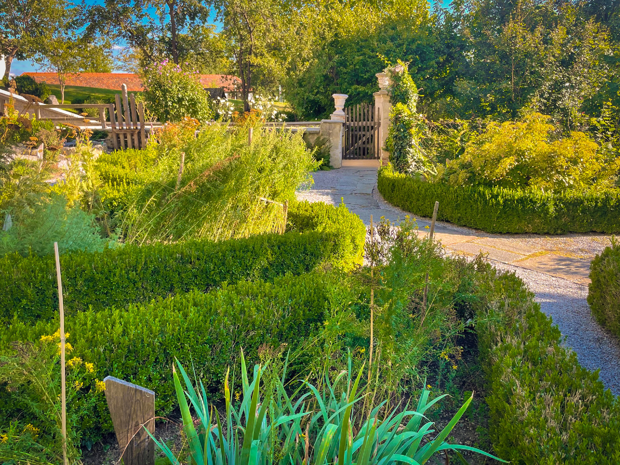 A gyógynövénykertben eredetileg az 55 legfontosabb gyógynövényt ültették el, ma már ennél jóval többet számlálhatunk meg. Sétálhatunk a növények között, de kérhetünk vezetést is, hogyha szeretnénk még többet megtudni a növények sokféleségéről, gyógyhatásaikról. Alexandra Wagner, gyógynövényszakértő várt rám, és ez alkalommal a növények zenéjében mélyedtünk el közösen, miután kigyönyörködtük magunkat a páfrányok leveleinek fényjátékában.