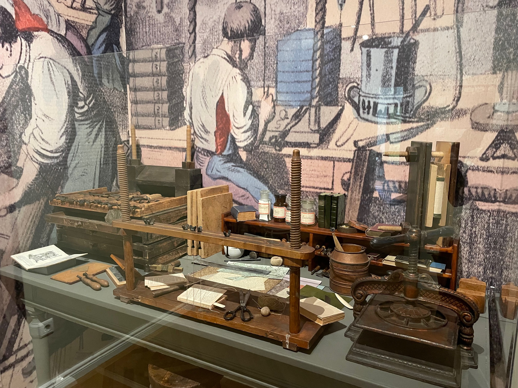 A kiállításon nem csupán tárgyakat, könyveket tekinthetünk meg, hanem egy remek kisfilm keretében a kézi könyvkötészet kulisszatitkaiba is beleshetünk, ami nem sokkal különbözik attól a módszertől, amikor az aranyfüstöt tojásfehérjével rögzítették a bőrkötés gerincére.