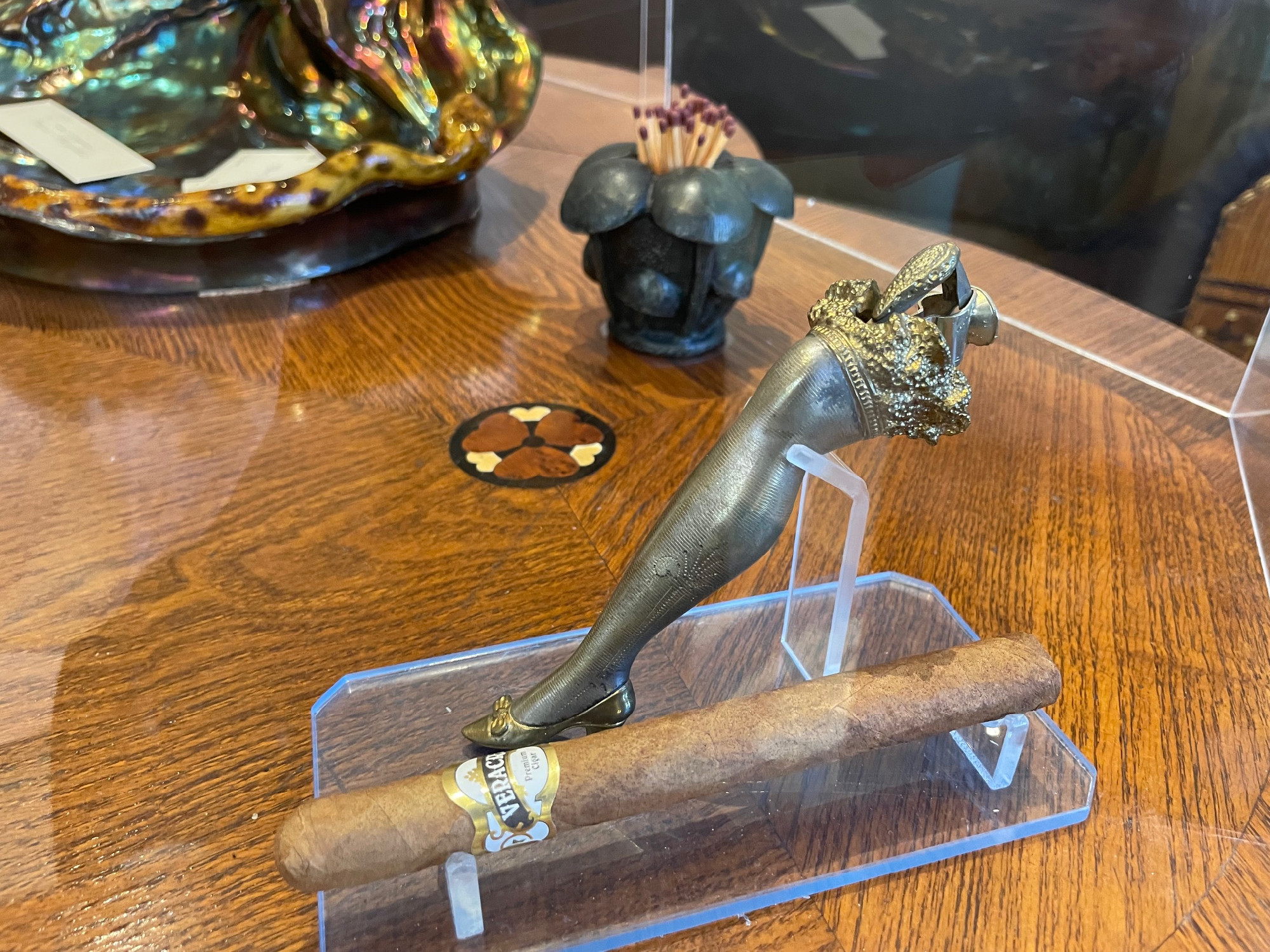 A szecesszió az érzelmek és az érzékiség buja örömével ajándékoz meg ma is, a fogadószobába lépve magunk is megtapasztalhatjuk. A berendezés finom faberakásai, a női lábat mintázó szivarvágó, a pici piros szívekkel díszített zöld üvegek mind a szerelemről, a szeretetről, s szépség dicséretéről vallanak. Tiziano Égi és földi szerelem című képének reprodukciója, Csók István Tavasz című festménye csak ráerősít erre. A méretes Zsolnay kaspón az áldozatára lecsapó sas motívuma, a vágynak a madarak harcában megtestesülő vihara Ady Endre Héja-nász az avaron című versének illusztrációja is lehetne akár.