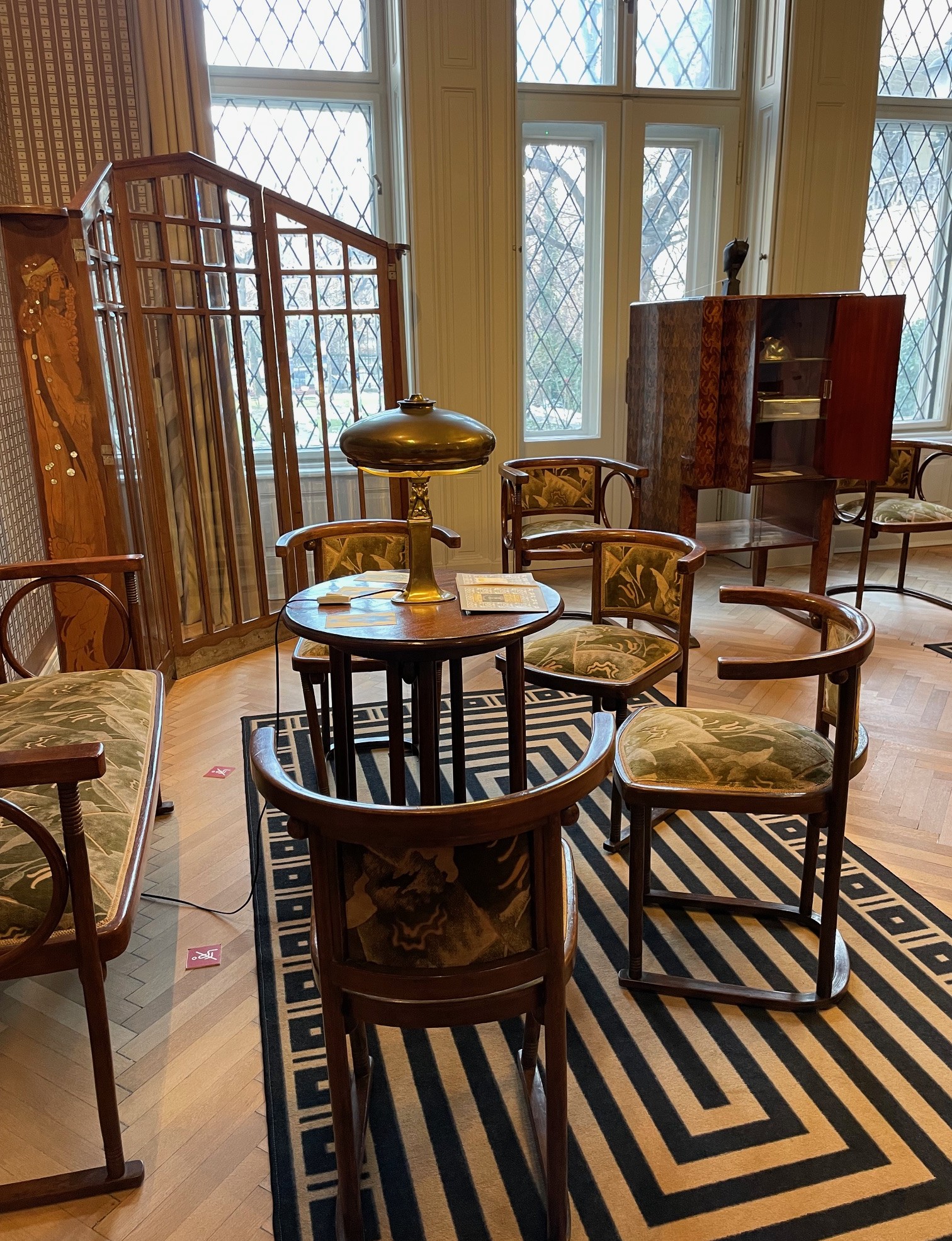 A villa állandó kiállítása a most éppen felújítás alatt álló Iparművészeti Múzeum legjelentősebb szecessziós darabjait vonultatja fel, kiegészítve természetesen Ráth György saját gyűjteményének értékes darabjaival. Aki kedveli ezt a korszakot, annak otthonos élményt jelent belépni a különféle enteriőrökbe, amelyek egy-egy részletét a szerencsések ismerősként üdvözölhetik. A hangulatot jómagam is átéltem nagynénéim pesti lakásaiban gyerekként, és néhány bútordarab, néhány tárgy most itt van velünk, nagyon a szívemhez nőttek. A historizáló művészeti korszakot felváltó magyar szecesszió új formanyelvet jelentett hazánkban, ornamentikája, az anyagok szépsége, a megkapó hajlékony formák lenyűgözőek.