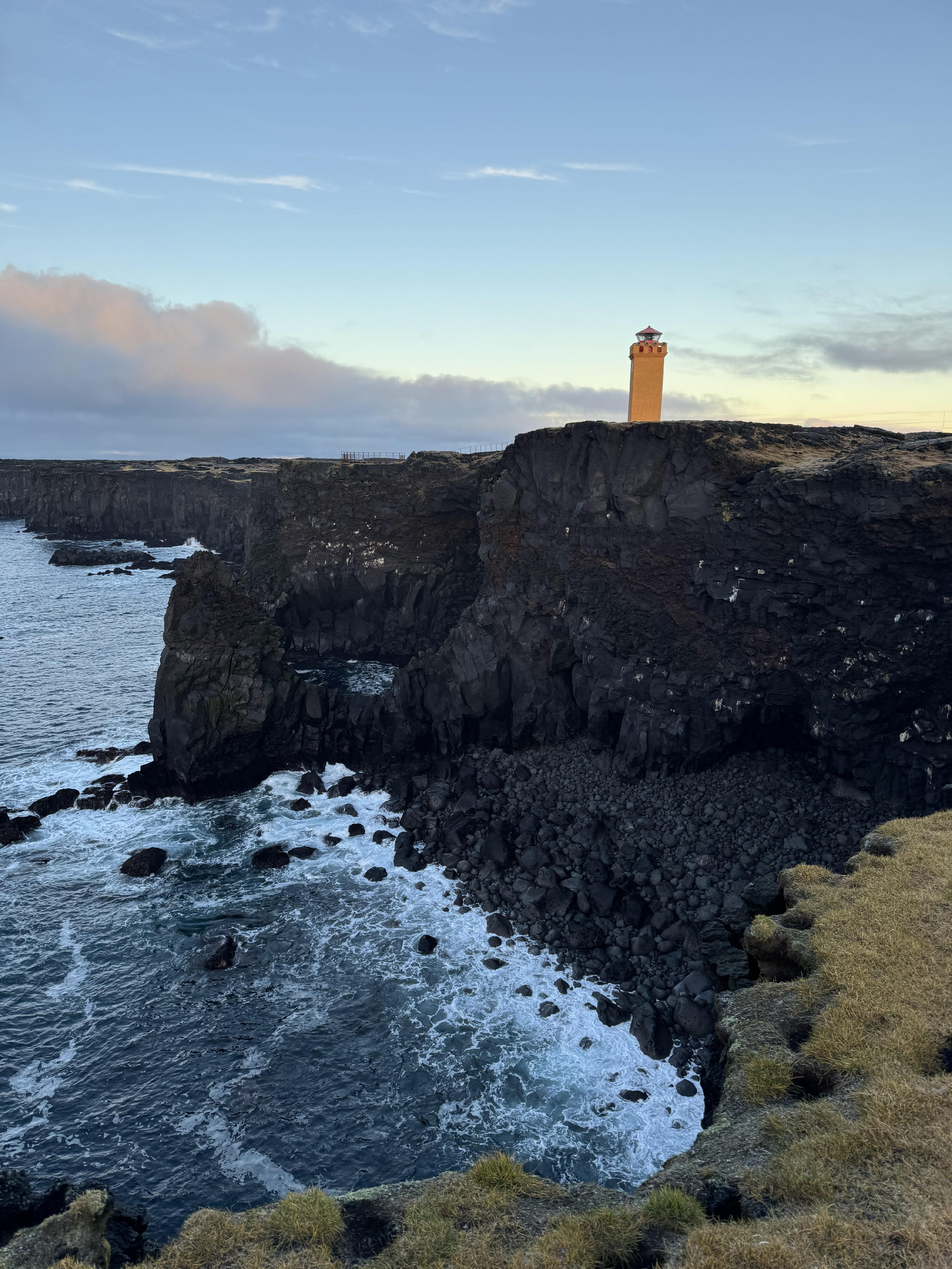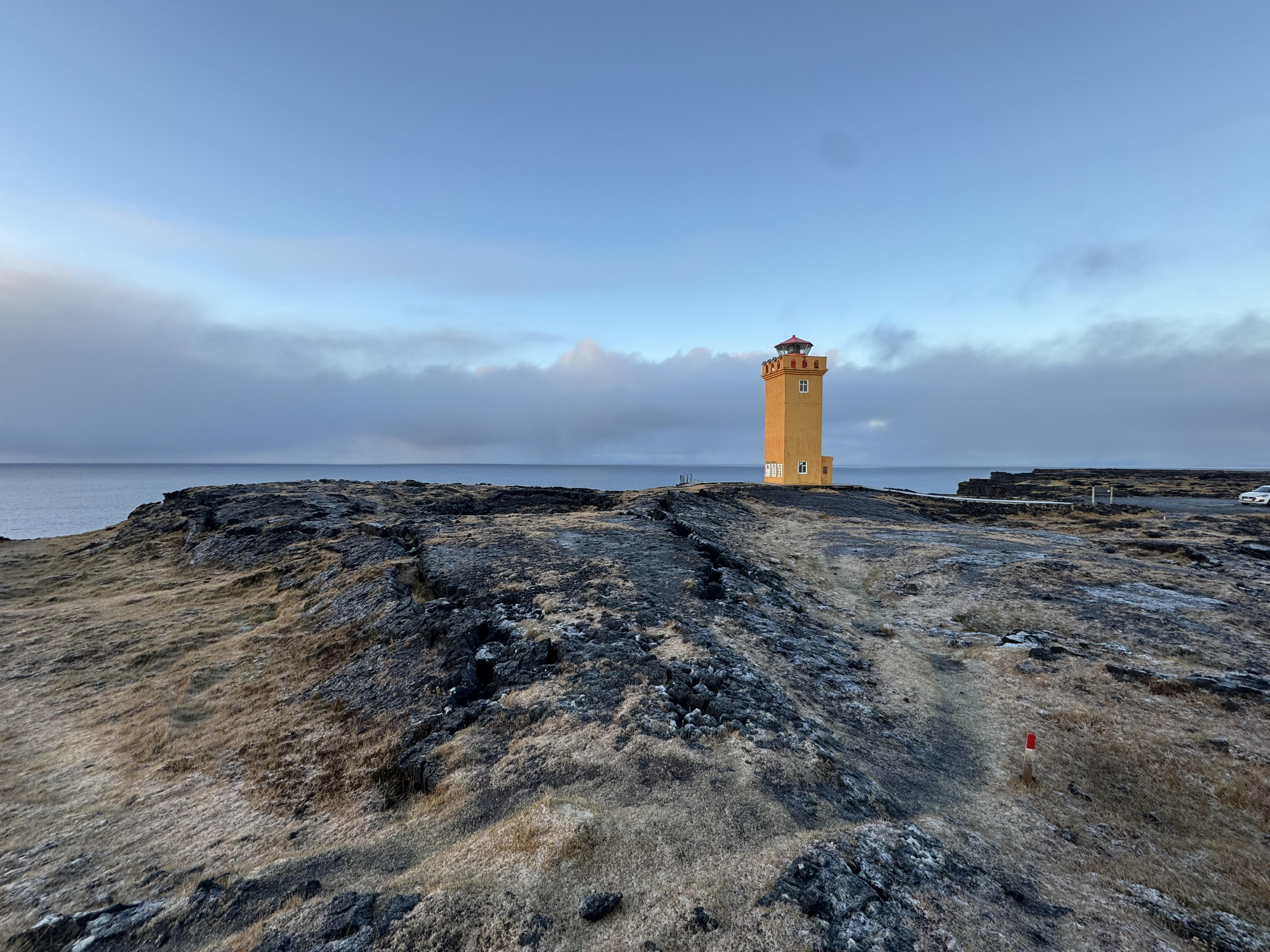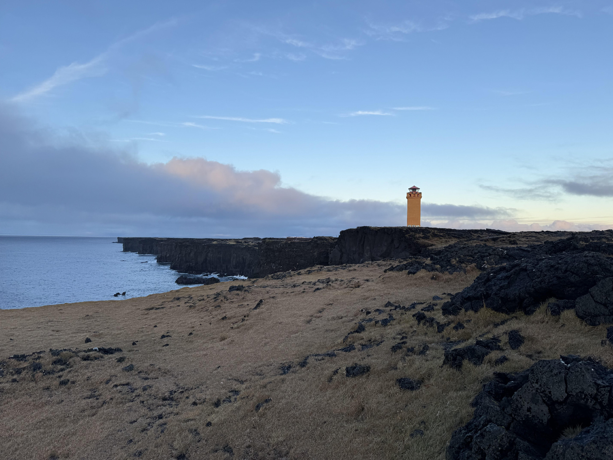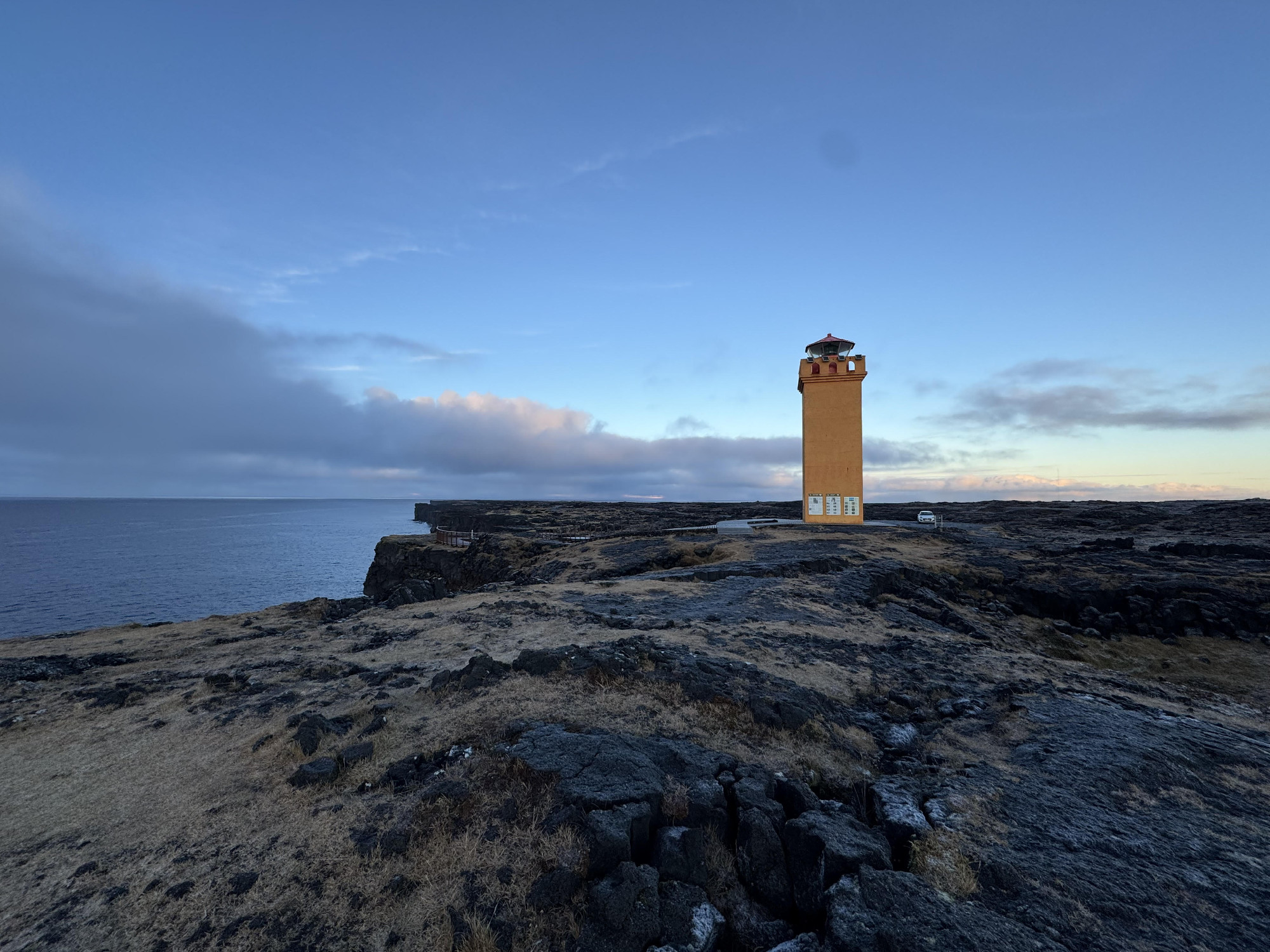 Az első világítótornyot itt 1914-ben emelték, majd a ma is látható betonépületet 1931-ben helyezték üzembe, mérnöke Benedikt Jónasson volt. A torony formája egyszerű és célszerű, falai felfelé keskenyednek, belsejében két szintet kötnek össze a lépcsők, fénye pedig ma már napenergiával működik. Kettős neve nem véletlen: szárazföld felől Skálasnagi, a tenger felől Svörtuloft néven ismerik, jelezve, hogy ez a pont egyszerre tartozik a földhöz és a nyílt óceánhoz. Ez a hely nemcsak Izland, hanem Európa egyik legnyugatibb pontja is; innen nézve a kontinens mögött már több ezer kilométerrel távolabb az amerikai szárazföld húzódik. Bár Izland legnyugatibb pontjaként gyakran a madársziklákkal tarkított Bjargtangar kerül említésre, Saxhólsbjarg és Svörtuloft hangulata legalább ennyire meghatározó: egy valódi bakancslistás, dobogós hely, ahol a szél, a szikla, a madarak és a világítótorony együtt mesélnek az ember és a természet határvidékéről.