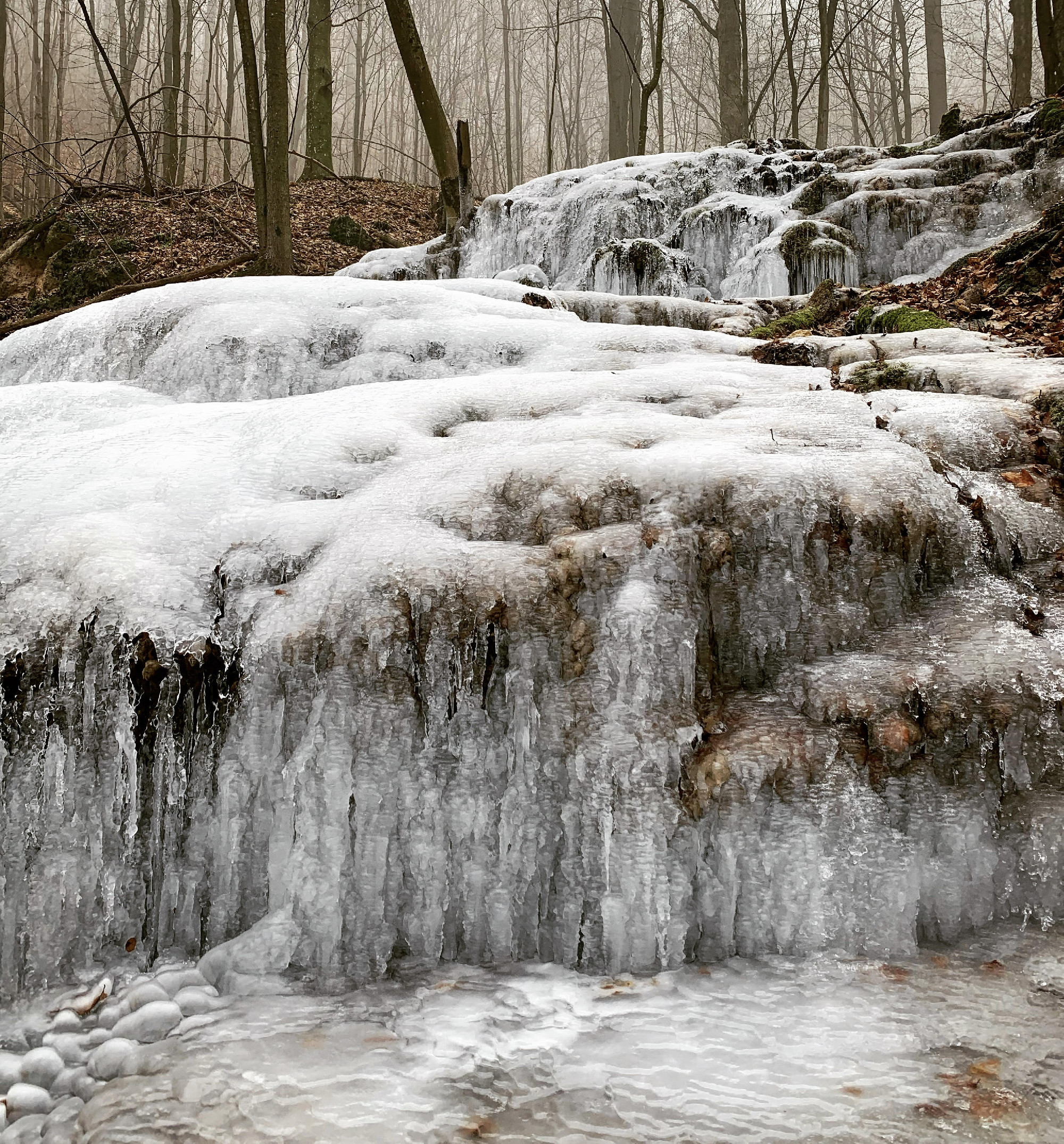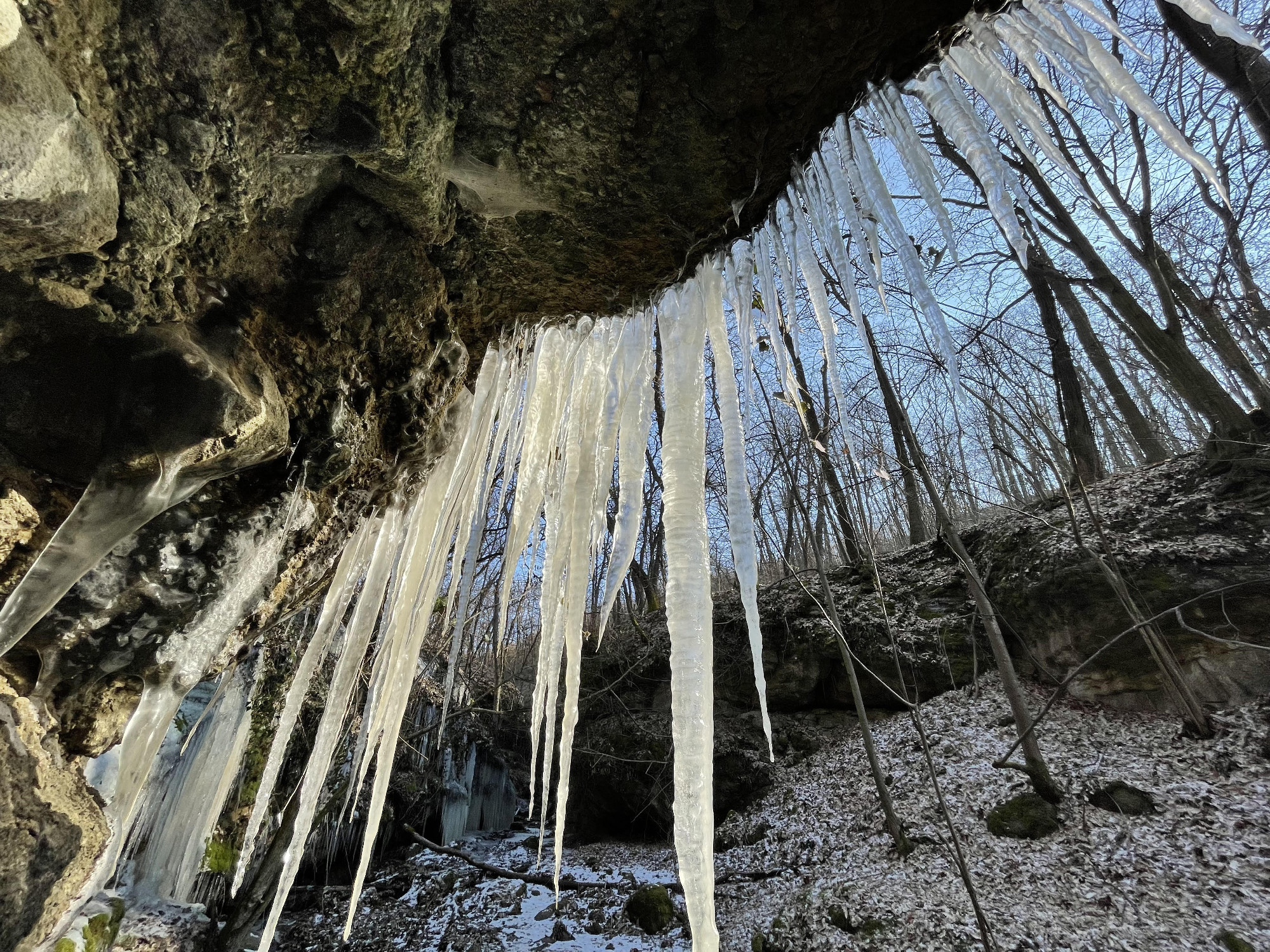 Az Istállós-kői-barlang Szilvásvárad fölött, meredek sziklafalban nyílik, a Bükk egyik legismertebb őskori lelőhelye. Télen azonban nemcsak történelmi jelentősége miatt különleges: tartós hideg idején a barlang bejáratánál jégstalagmitok és jégcsapok alakulnak ki. A jégstalagmit, avagy „jégcseppkő” (de nevezik jégoszlopnak vagy jégkúpnak is) a hideg barlangokban, pincékben vagy sziklaüregekben alakul ki, ahol a hőmérséklet tartósan 0 °C alatt van. A képződése hasonló az ásványi stalagmitéhoz, de itt a víz és fagyás folyamata a kulcsszereplő. Érdekessége, hogy nem a sziklafalakról vagy a barlangok mennyezetéről lóg, hanem a talajból emelkedik ki – növekedésük lassú és körülményes, így, ha ilyeneket látunk, fokozottan ügyeljünk épségükre.