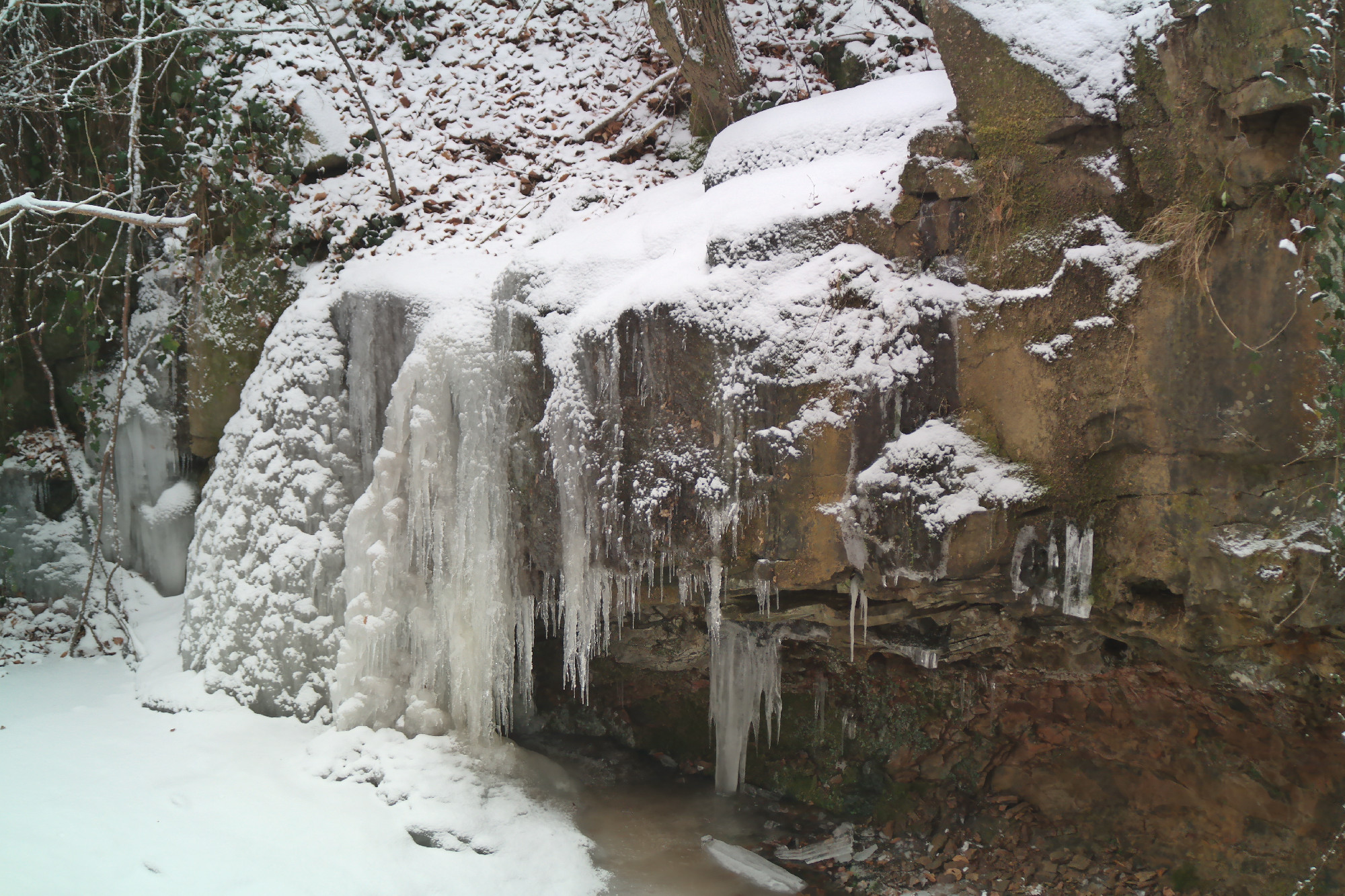 Szurdokpüspöki határában több szűkebb, mély völgy, valamint bányafal rejtőzik, amelyek télen meglepő arcukat mutatják – például az Eszter-forrás vagy a Köszvényes-kút közelében. A sziklafal repedéseiből szivárgó víz hosszú jégcsapokat és vastag jégfüggönyöket hoz létre. Az olykor mesterségesen létrejött sziklafalak simább, egyenletesebb felülete miatt a jég formái letisztultabbak, oszlopszerűek. Ezek a helyek kevésbé ismertek, így meglátogatásuk igazi felfedezőélményt nyújt, megközelítésük a korábban említett forrásoktól rövid terepsétával lehetséges.