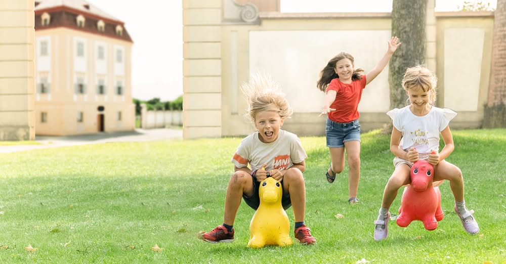 A szimulátor mellett található barokk istállóban pedig Schloss Hof lovaival, kis szerencsével pedig a tengeri malacokkal és az óriásnyúlakkal is meg lehet ismerkedni. Aki a kaland során ügyesen összegyűjti az összes fontos nyomot, azt a túra végén meglepetés jutalom várja! De mindezek mellett természetesen ott van az óriási játszótér és az állatsimogató, a legkisebbeknek pedig a fából készült futóbicikli-pálya.