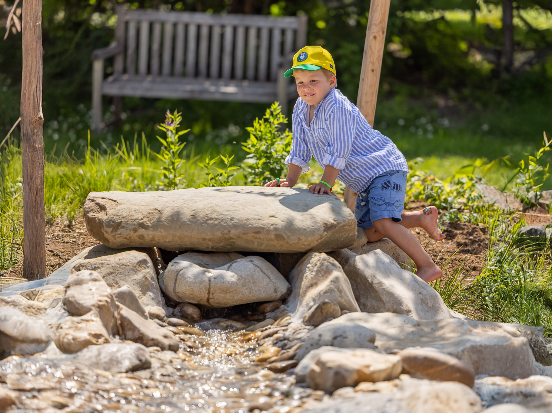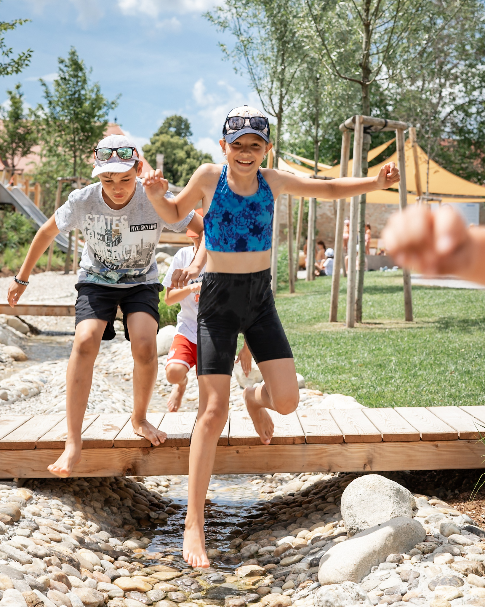 A terület kialakításakor nagy hangsúlyt fektettek a természetközeliségre: a patakmedrek, forráskövek, kaviccsal borított szakaszok és a buja növényzet a Duna-menti ártéri tájak hangulatát idézik. A kellemes árnyékról több mint harminc frissen ültetett fa, valamint hét árnyékoló gondoskodik.