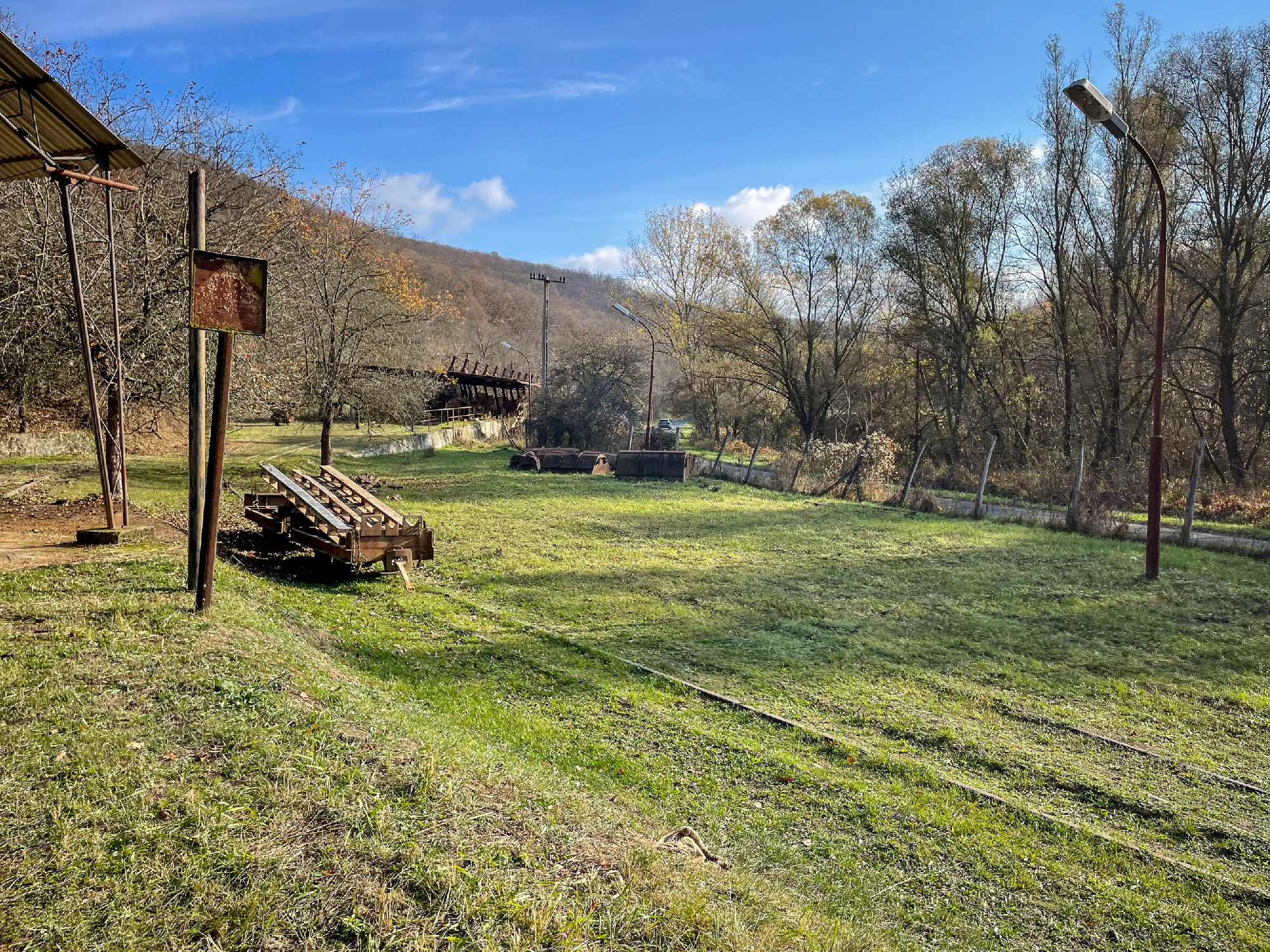 A vezetett túra egy valódi urbex-kihívással indult, mert a magára hagyott bányatelep rozsdásodó berendezéseiben gyönyörködhettünk, sehová nem vezető sínpárokon gyalogoltunk egészen a hegy oldalában ásítozó bányabejáratig. A valamikor virágzó bányászéletről a hatalmas épületek, a gondosan ültetett fenyőfasor, a kandeláberekkel szegélyezett út regél. Ezt a nemesagyag-bányát 2007-ig művelték, addig folyt a kitermelés, azóta csak a külszíni fejtés folyik.