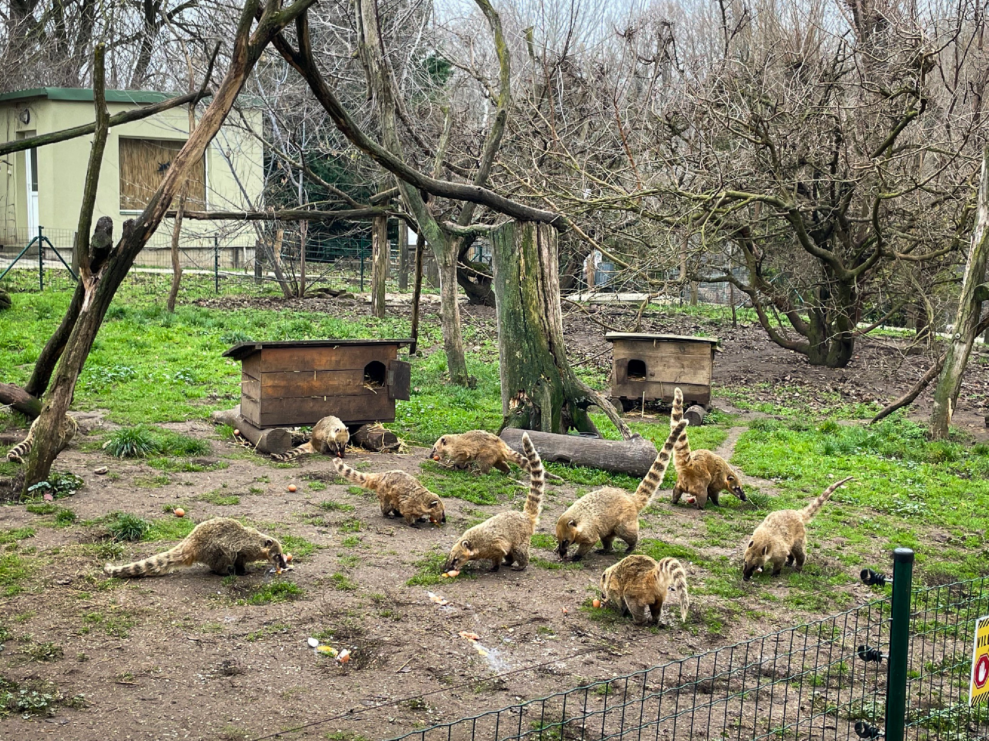 A mókás ormányos medvéket tojással etethettük meg, imádnivalóak voltak, ahogy szaladtak a tojásokért, és amelyik nem tört össze, azt megpróbálták bevinni kis házikójukba. A szőrös vendégízületesek rendjébe tartozó méltóságteljes sörényes hangyászok egyik kedvence a joghurt, mint plusz fehérjeforrás. 60 cm-es nyelvüket nagyjából 40 centi hosszan tudják kinyújtani, így a kerítésen kívül lévő tálból pillanatok alatt kilefetyelték a mai finomságot. Érdekes, hogy egy ekkora testű állatot a természet nem ruházott fel fogakkal, így a nyelvével kell gondoskodnia a megfelelő élelemről. Kihajtható karmai miatt veszélyes, ezért a gondozók nagy óvatossággal, fémpajzs védelmében közelítik meg. Testhőmérséklete 32 fok, és amikor aludni tér, összegömbölyödik és zászlós, dús farkával takarja be magát. Ezeket az érdekességeket akkor is megtudhatjuk, ha magunk járjuk be az állatkertet, mert lépten-nyomon tájékoztató táblák és játékos ismeretterjesztő feladatok teszik interaktívvá az ottlétet.