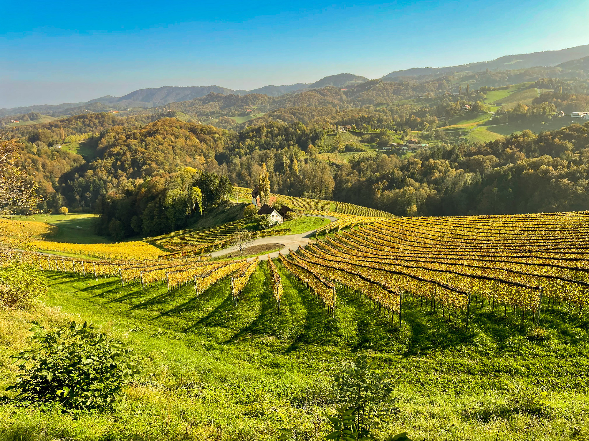 Az „osztrák Toszkána” sincs messze, és a szőlőkkel borított dimbes-dombos vidék, a ködben úszó völgyek, a gerinceken büszkén sorakozó nyárfák különös hangulatot keltenek. A Dél-Stájer borút és környéke bővelkedik útvonalajánlatokban: borkedvelőknek, ínyenceknek, bringásoknak és túrázóknak, de a kulturális emlékek szerelmeseinek is szuper kirándulóhely.