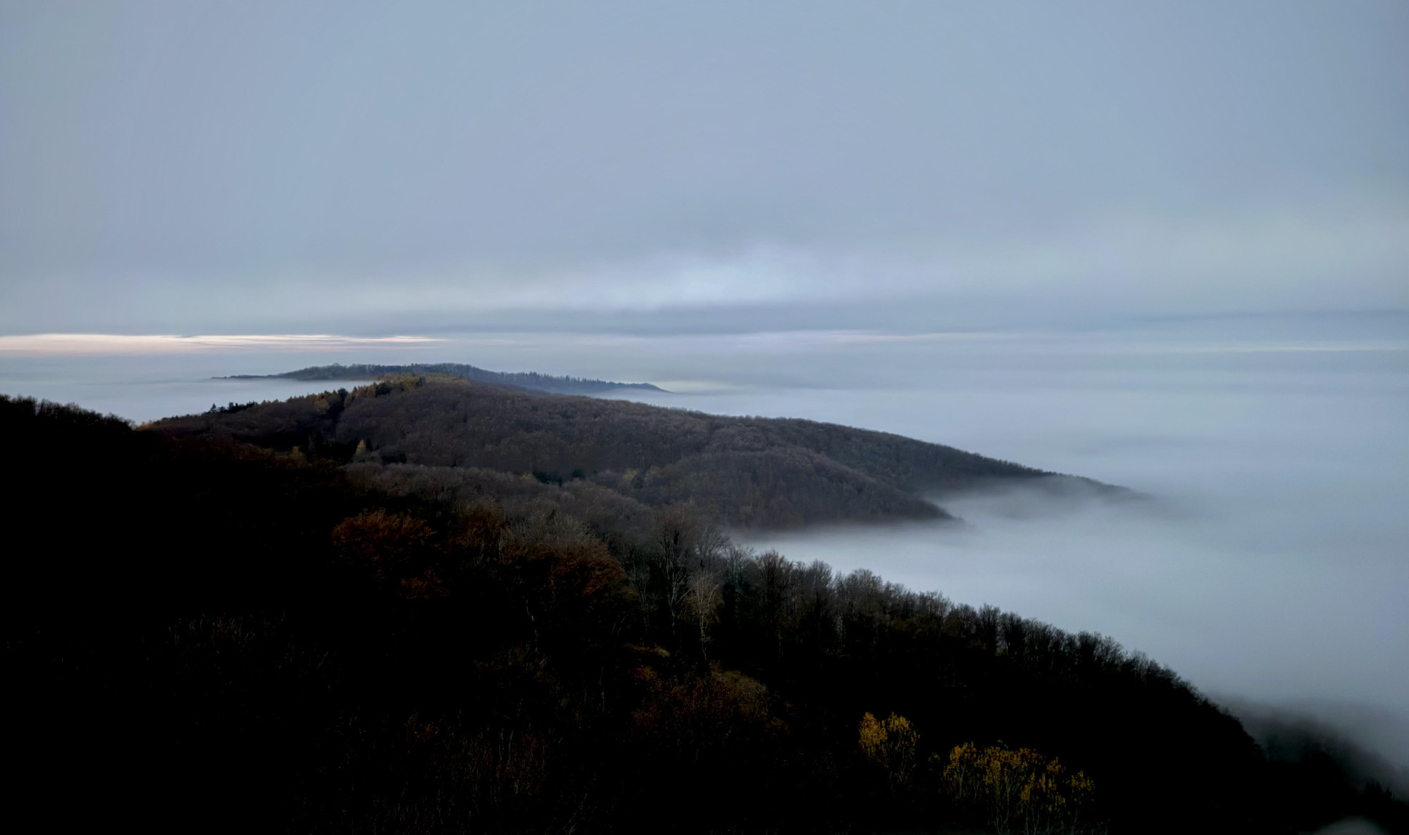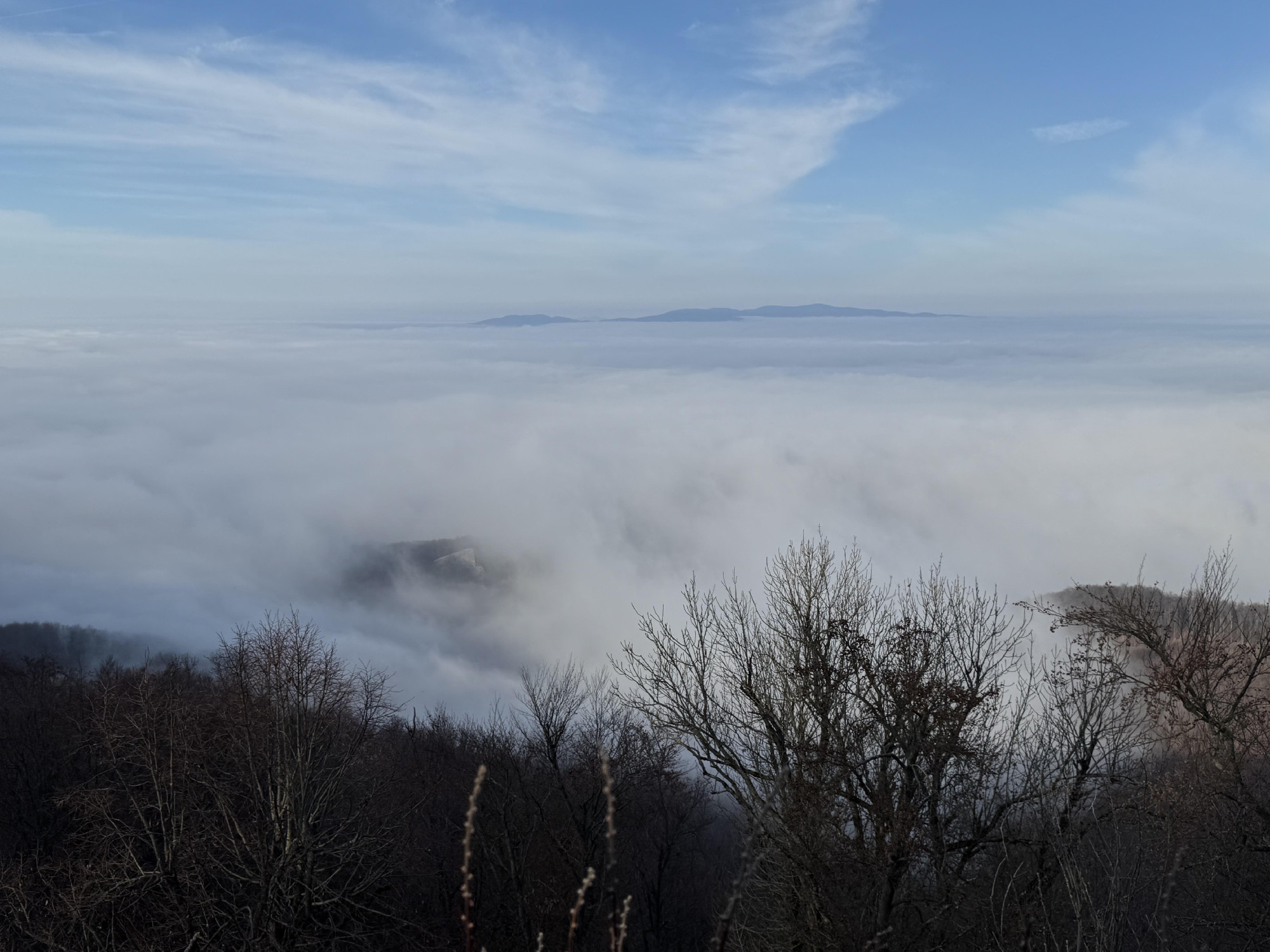 A Börzsönyben a Nagy-Hideg-hegy, a Csóványos vagy a Nagy-Mána gerincei gyakran úsznak ki elsőként ebből a képzeletbeli tengerből, és különösen a napkelte idején káprázatos a látvány: rózsaszín felhőfodrok fölött szigetszerű csúcsok ringanak. A Pilis-ben vagy a Visegrádi-hegység magasabb pontjain – a Pilis-tető, a Prédikálószék, Dobogókő, Vadálló-kövek, Nagy-Villám – szintén megtörténik ez a különös „átlépés”: odalent minden szürke, egyhangú, fentről pedig fehér és mozdulatlan, az ég kék és ragyog a fény. Ilyenkor a kilátópontok és panorámaösvények olyan élményt adnak, mintha az ember egy természeti erkélyre lépne ki a világ fölé.