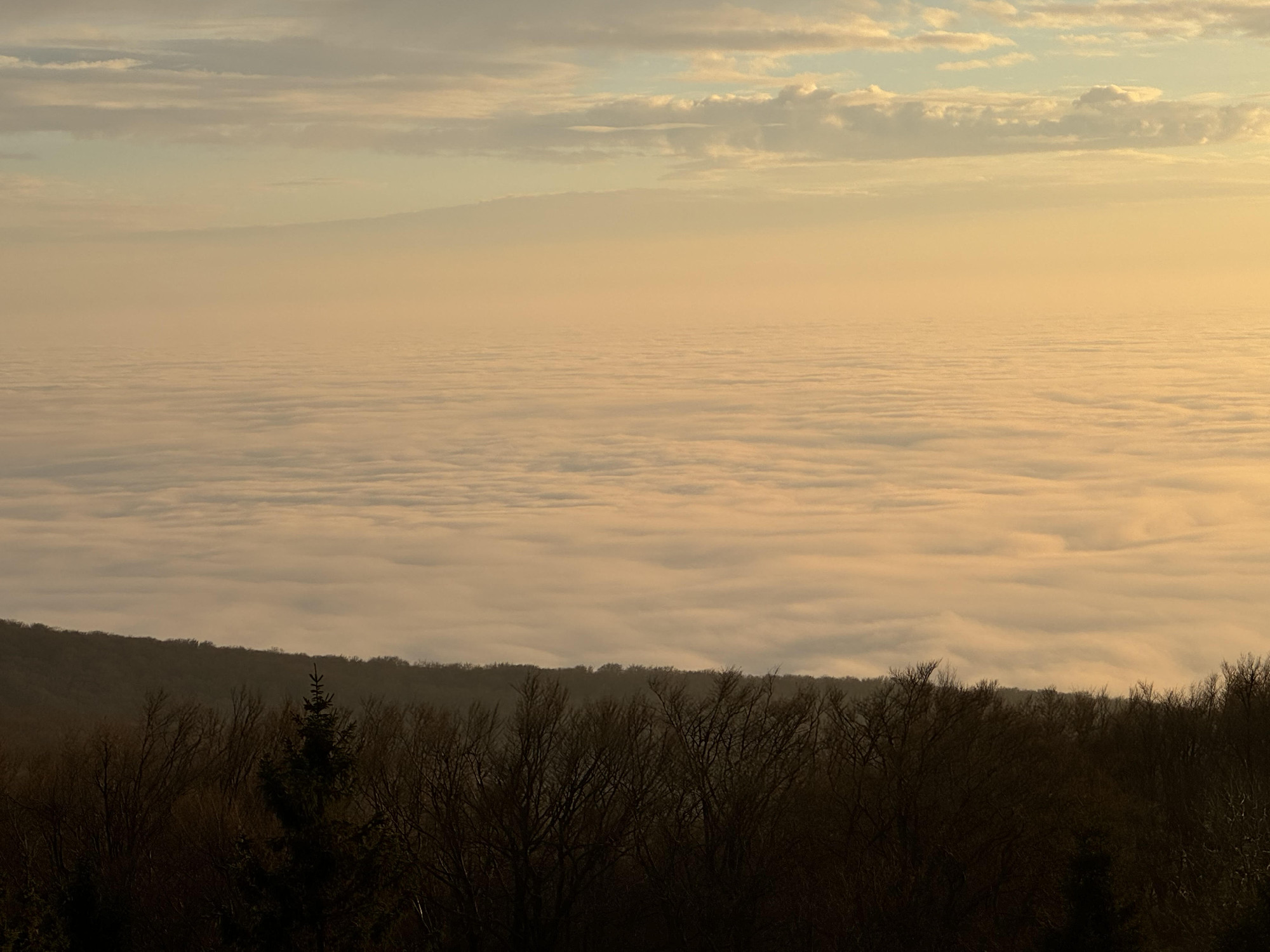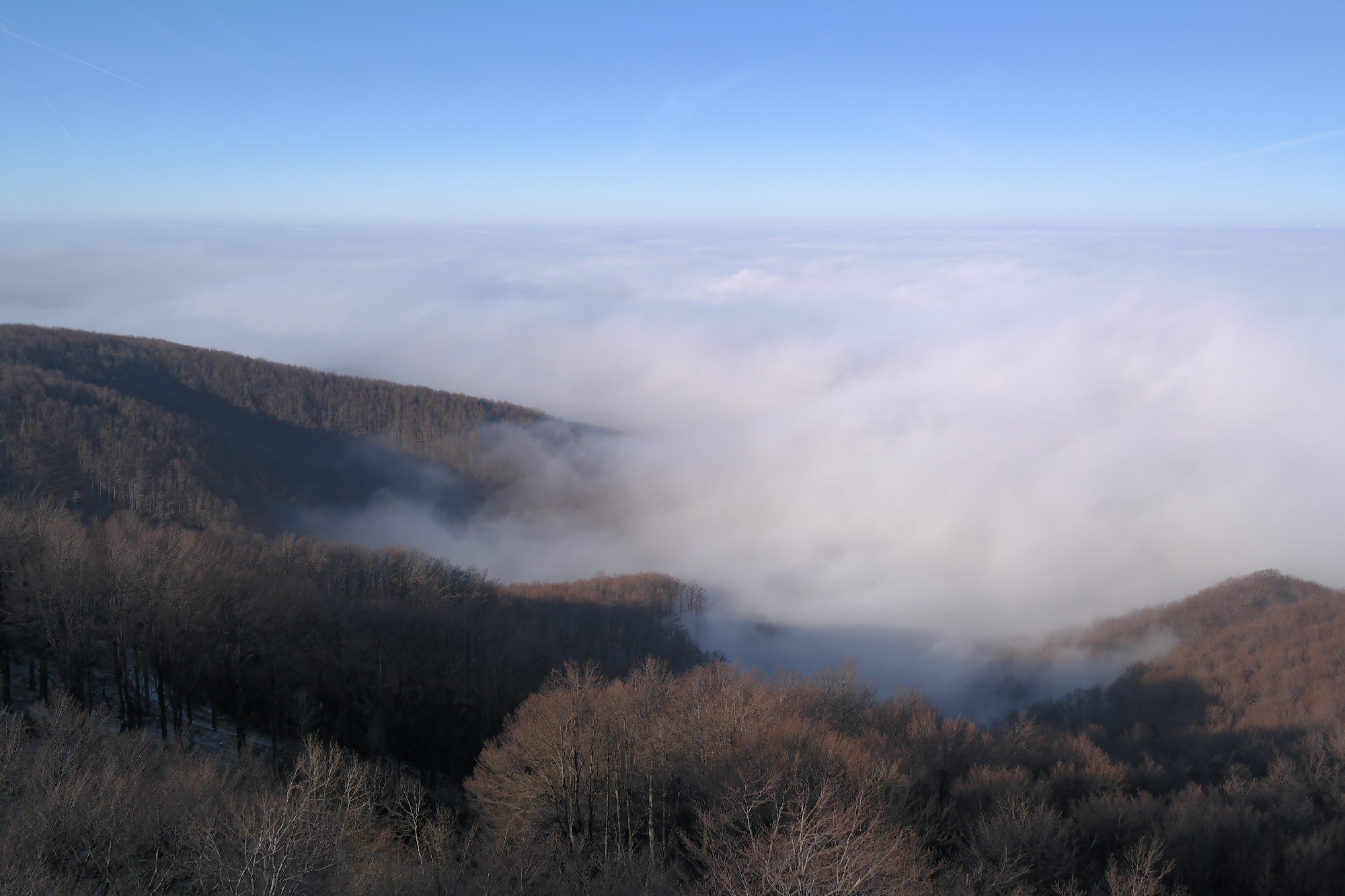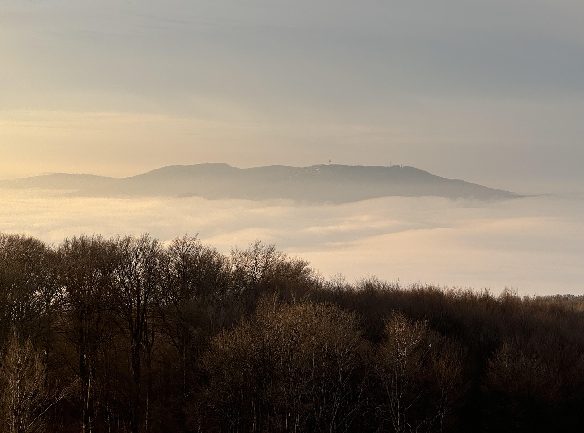 A völgyben szürkeség, nyirkos hideg, egyhangú utcák; fent pedig aranyló napfény, kristálytiszta levegő, és a ködtengerből büszkén kiemelkedő csúcsok. Túrázóként ilyenkor úgy érzi az ember, mintha a felhők felett járna, a lába alatt pedig egy lassan hullámzó, szürkésfehér óceán terülne el. A horizonton távoli hegyormok szigetszerűen úsznak a „tengerben”, a napfény pedig napszaktól függően kékes-rózsás-narancsos árnyalattal festi át az egészet. Valahol mélyen ez egyfajta érzelmi élmény is: egyszerre békés, emelkedett és kicsit mesebeli. Az ember szívében ilyenkor valami eltűnt egyszerűség ébred újra, ahogy a természet legfinomabb arca feltárul. Megáll a levegő: a felhőpaplan felett ilyenkor mindig megmagyarázhatatlan, különös csend honol, mintha a világ elcsendesedett volna, az idő fogalma megszűnne és egy gyerekkori tündérmese lapjai elevenednének meg a szemünk előtt.