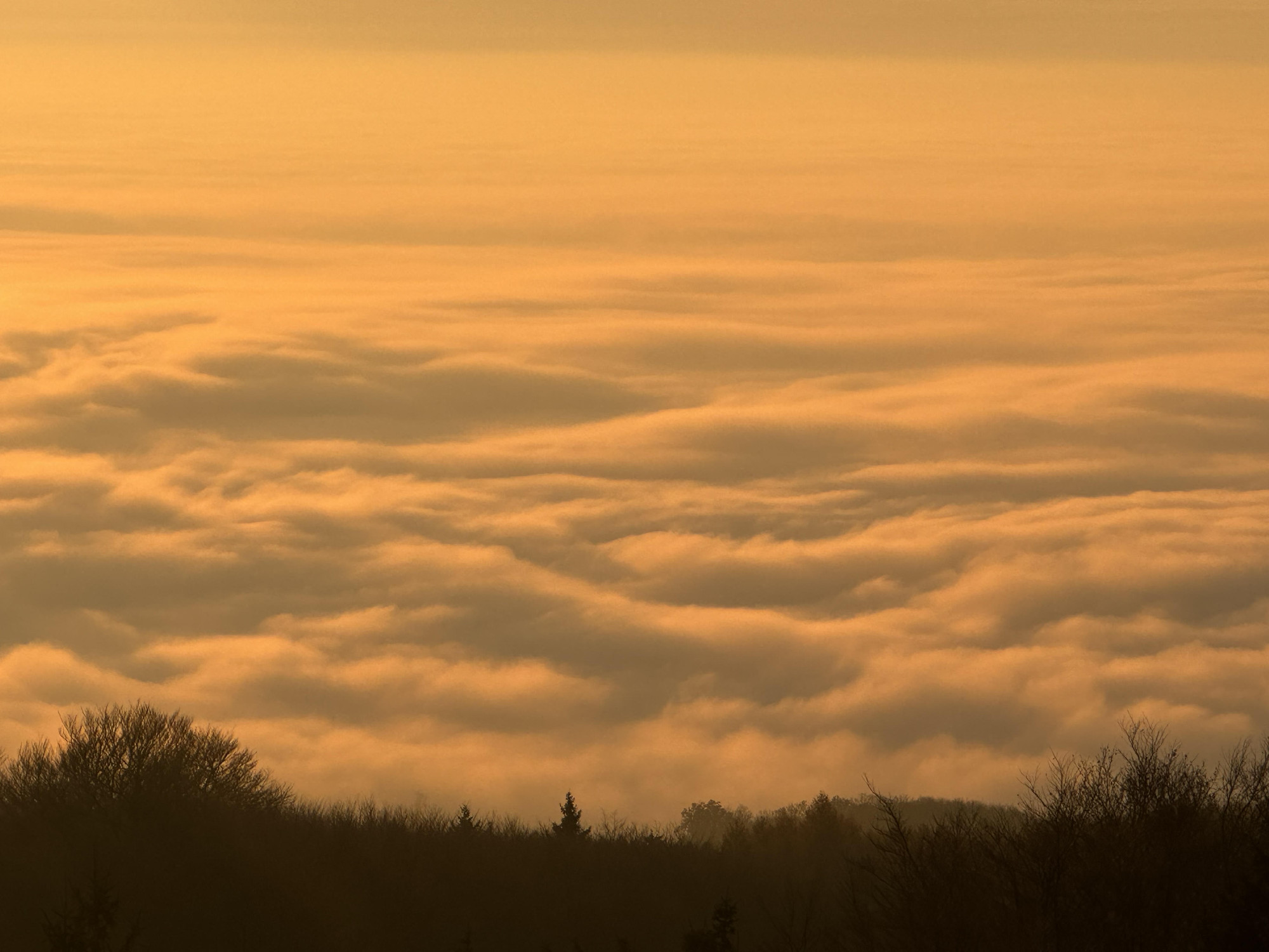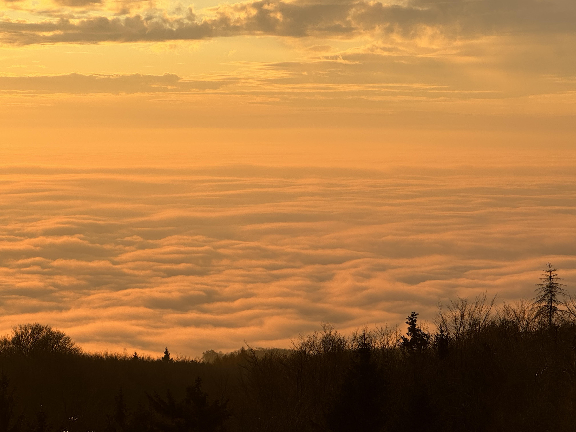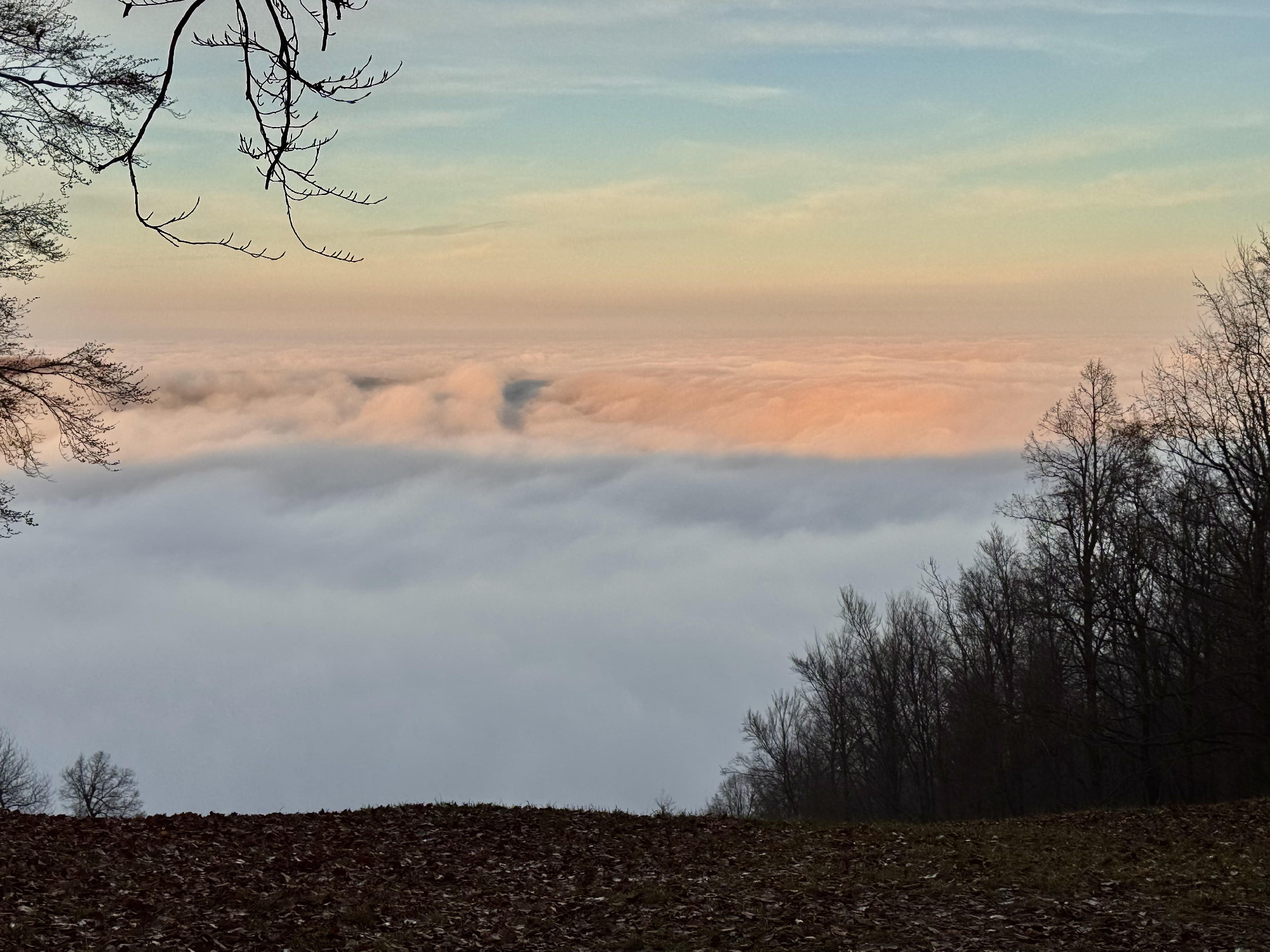 A völgyben szürkeség, nyirkos hideg, egyhangú utcák; fent pedig aranyló napfény, kristálytiszta levegő, és a ködtengerből büszkén kiemelkedő csúcsok. Túrázóként ilyenkor úgy érzi az ember, mintha a felhők felett járna, a lába alatt pedig egy lassan hullámzó, szürkésfehér óceán terülne el. A horizonton távoli hegyormok szigetszerűen úsznak a „tengerben”, a napfény pedig napszaktól függően kékes-rózsás-narancsos árnyalattal festi át az egészet. Valahol mélyen ez egyfajta érzelmi élmény is: egyszerre békés, emelkedett és kicsit mesebeli. Az ember szívében ilyenkor valami eltűnt egyszerűség ébred újra, ahogy a természet legfinomabb arca feltárul. Megáll a levegő: a felhőpaplan felett ilyenkor mindig megmagyarázhatatlan, különös csend honol, mintha a világ elcsendesedett volna, az idő fogalma megszűnne és egy gyerekkori tündérmese lapjai elevenednének meg a szemünk előtt.