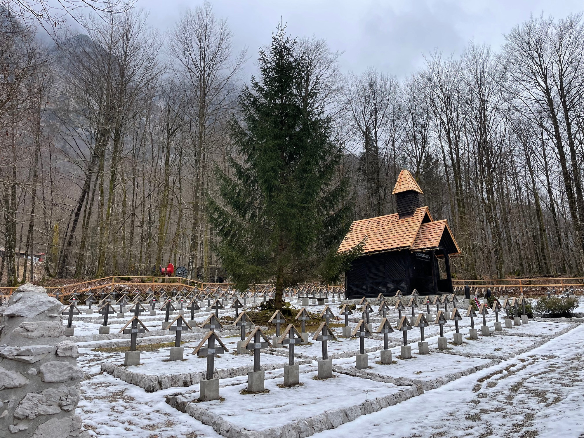 Ahol a Sava Bohinska megszelídül, Ukanc határában a fenyvesek aprócska temetőt dédelgetnek. A frissen felújított kápolna és katonás rendben sorakozó fejfák megállásra késztetnek. Magyar, lengyel, ukrán és osztrák katonák, a monarchia soknemzetiségű hadserege hőseinek sírjai ezek, akik az első világháború idején, 1915 júniusa és 1917 novembere közt estek el a Krn hegységben zajló véres harcokban.