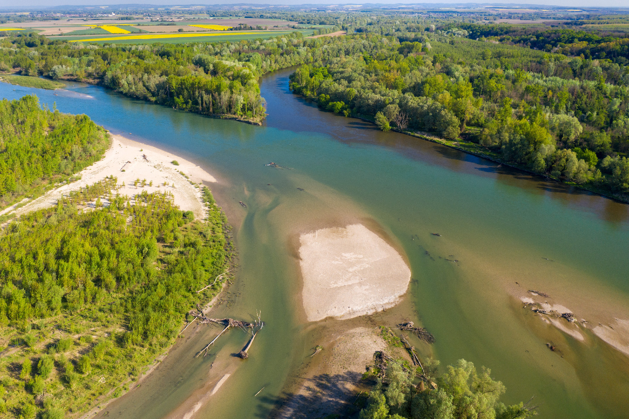 Az elágazást elhagyva néhány kanyar után már le is érünk a folyópartra. A szemünk elé táruló látvánnyal nehéz betelni. A két folyó folyamatosan változtatja medrét, kis szigeteket építve, és holtágakat alakítva ki. Ahogy a partra érünk, máris e csodás természeti környezet legjava tárul elénk. A hely különlegessége, hogy hiába folytatja itt közös mederben útját a Mura és a Dráva, vizük az összefolyás után sem keveredik össze: a folyó egyik sávjában a Dráva kristálytiszta, áttetsző zöldje hömpölyög, a másikban pedig a Mura agyagosan sárgálló, zavaros árja. A látvány egészen egyedülálló.