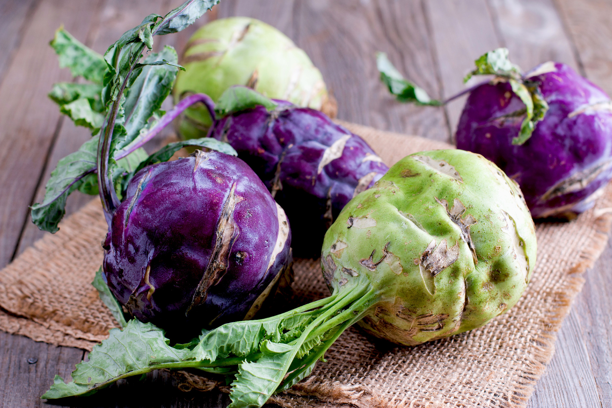 Fresh kohlrabi on the wooden table closeup