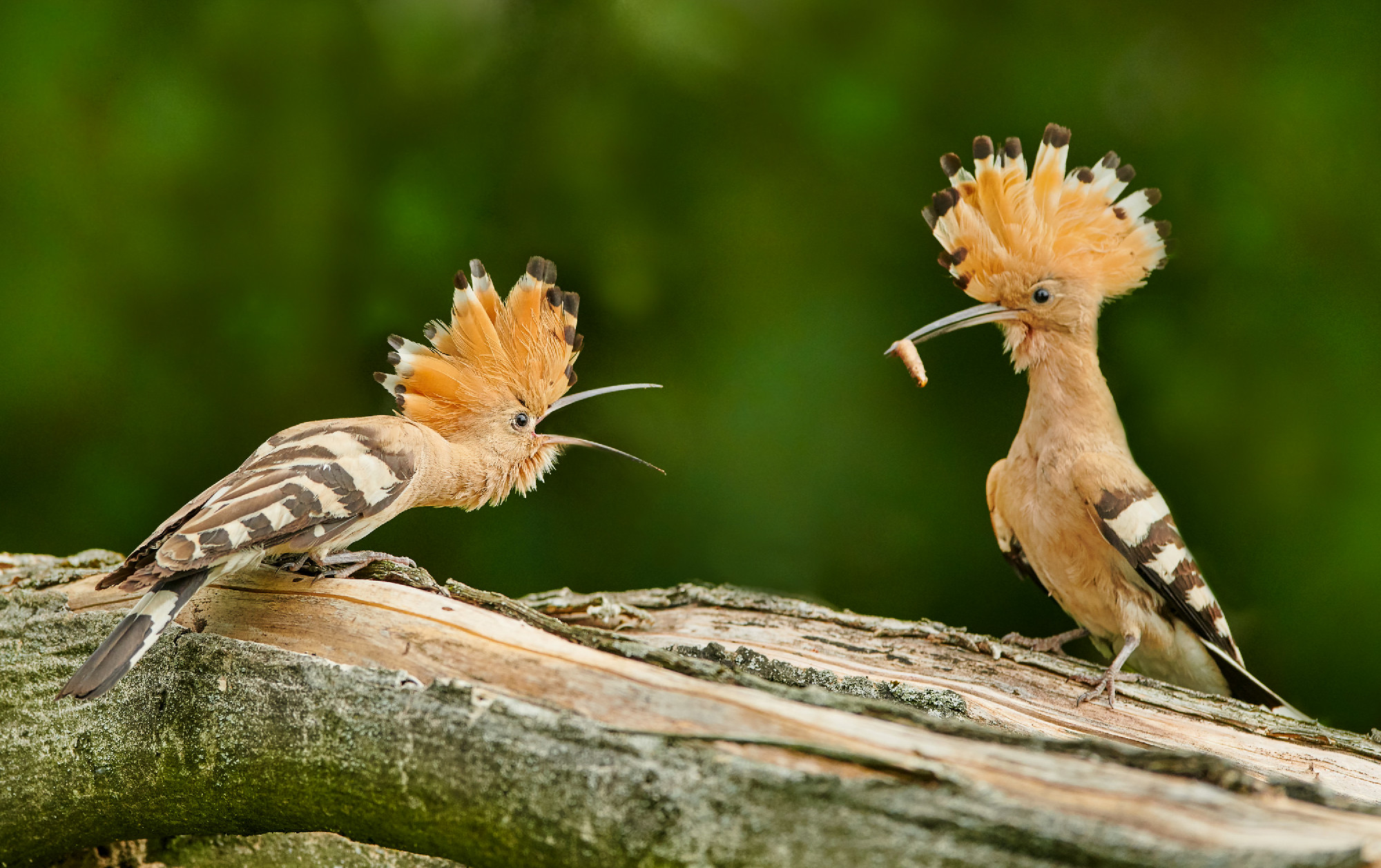 A fiatal búbosbankák valamivel több, mint három hétig maradnak az odúban, de a szülők a kirepülés után is még tovább etetik őket.