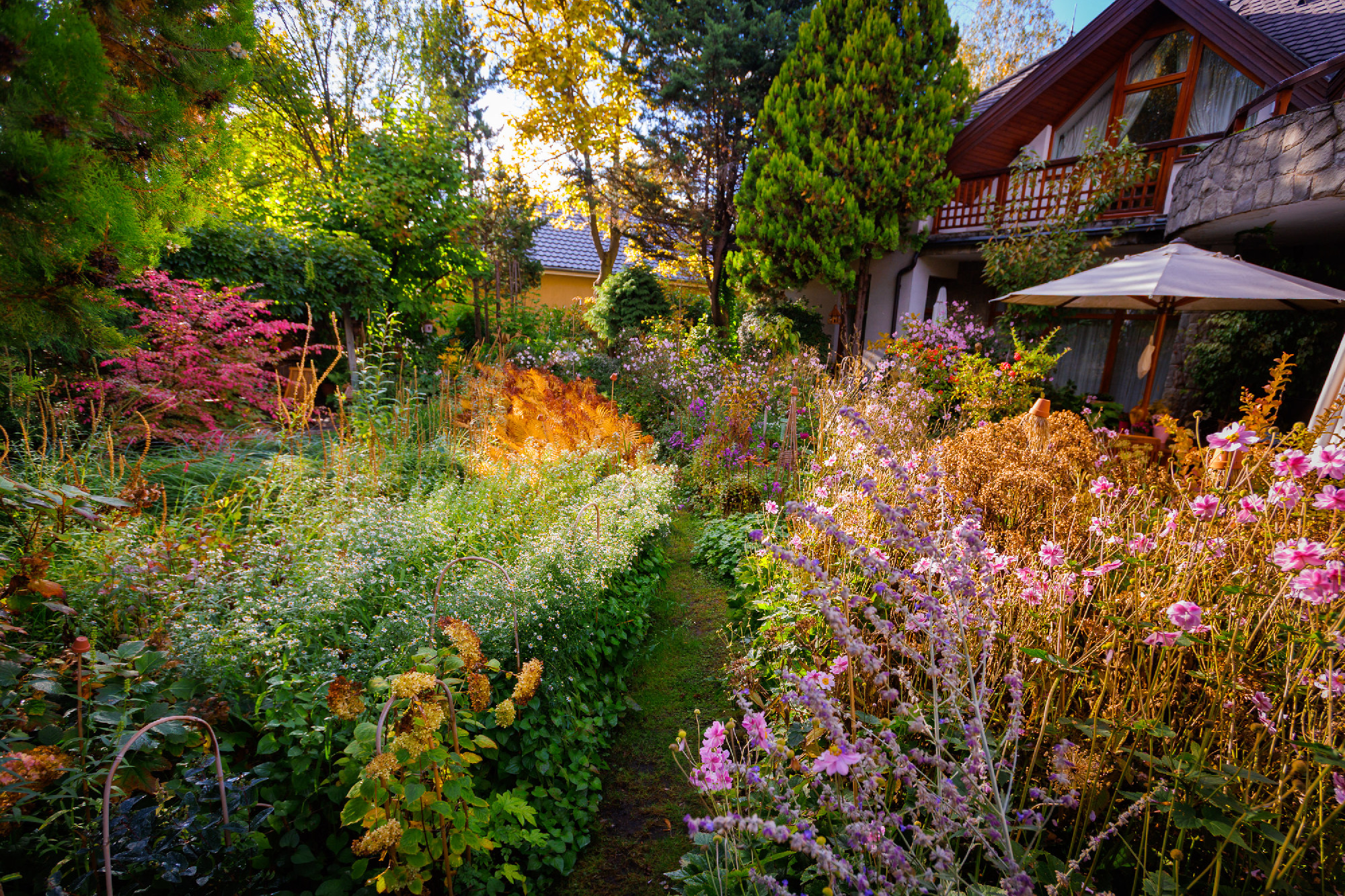 Ahhoz, hogy a díszkert ne mihaszna, mérhetetlen pazarlás árán legyen fenntartható, szükség van arra, hogy olyan életközösséget hozzál létre, mint amilyen a természetben is van. Igaz, hogy most egy jó zápor öntözte a kertet, de érezhető a vizes élőhelyek jótékony párája. Életerős és viruló a kert. Milyen módszerekkel alakítod, gondozod a kertet?
