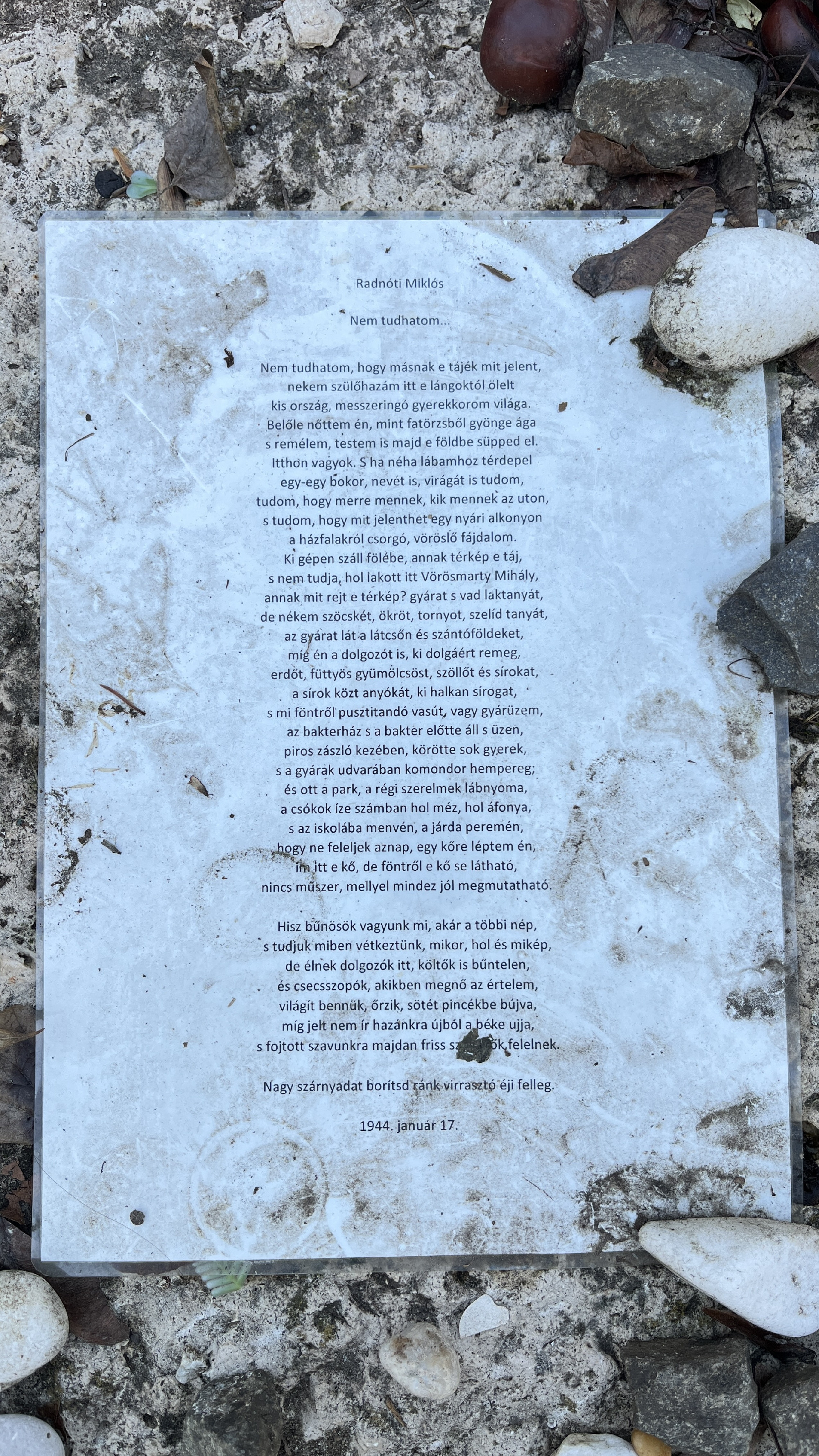 Radnóti Miklós és Gyarmati Fanni sírja is megpróbáltatásokkal és szenvedésekkel teli életeket rejt. Itt, a sír mellett elolvasni a “Nem tudhatom…” című költeményt nem egyszerűen megrázó, irodalmi alapélmény, hanem valóságosan is érezhető fájdalom.