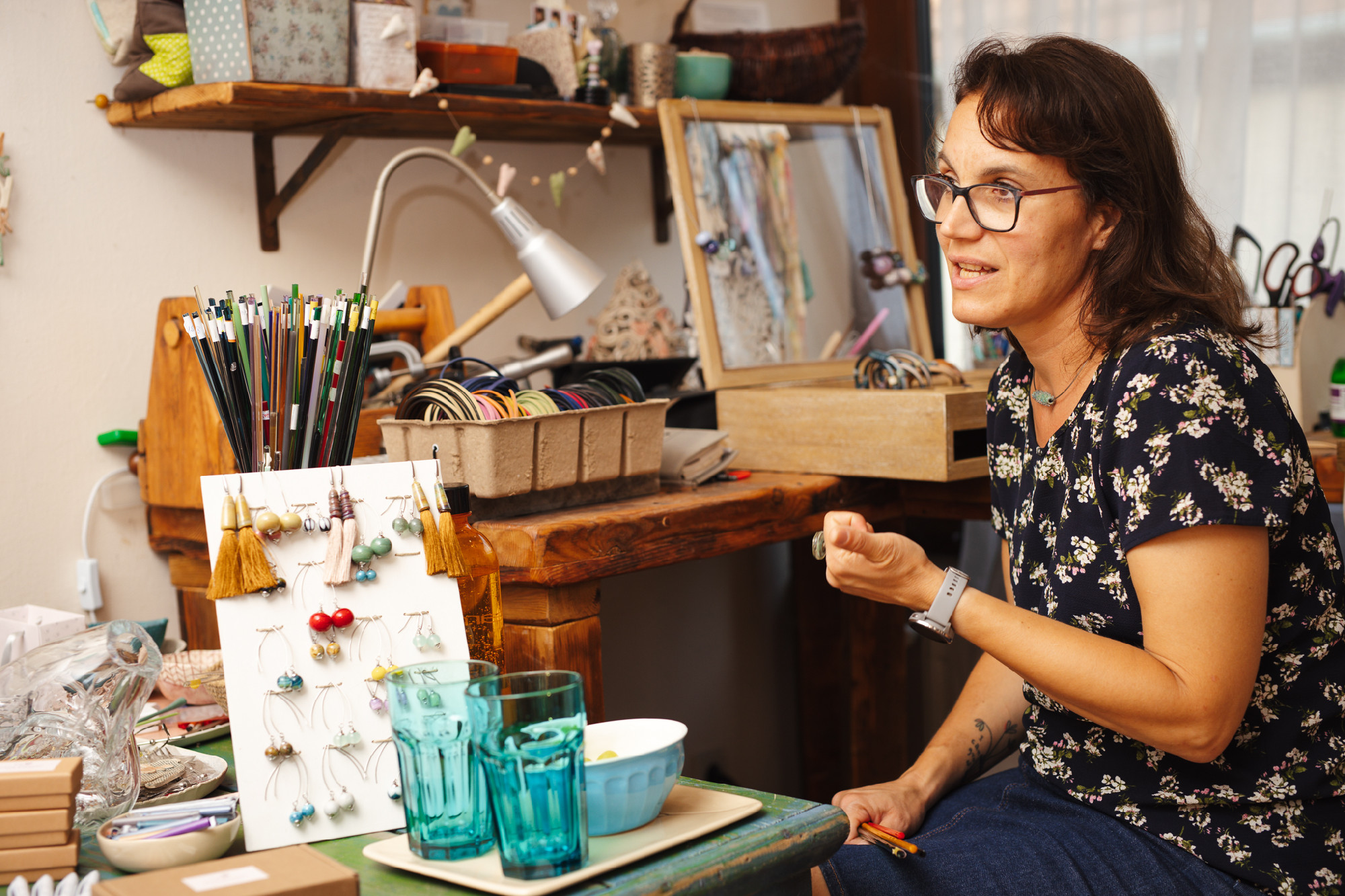 Sokat kellett logisztikázni! Inkább éjszaka és hétvégéken tudtam dolgozni, meg reggel korán, amíg a család még aludt. Az egész életünket áthatja az üvegezés, mindenhol vannak ékszerek, gyöngyök, van, hogy a fürdőszobában áznak éppen, hogy le tudjam fejteni a pálcáról vagy amíg a gyerekek fürödnek, én gyöngyöt pucolok. Szóval, minden töredék-időt kihasználok, hogy az aprólékos munkát meg tudjam csinálni.