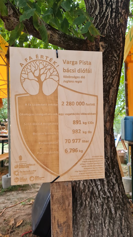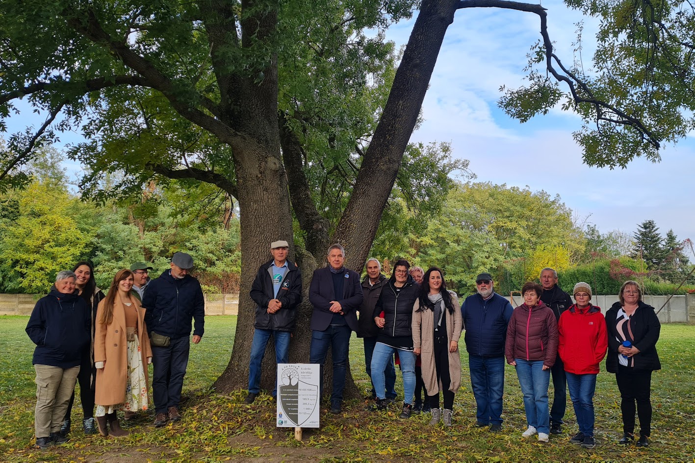 Ilyen élmények és tapasztalatok hatására került be az életünkbe a fák csodálatos világa, ráadásul az évek alatt bekapcsolódtunk a klímavédelmi cselekvésekbe, így egyre jobban láthatóvá vált számunkra az is, hogy mekkora szerepük van a fáknak a környezet egyensúlyában és az emberek jóllétének biztosításában. Magánemberként már régóta használtuk Radó Dezső kiadványát és a Magyar Faápolók Egyesületének alkalmazását. Előbbivel kicsit bonyolultabb számításokkal, az alkalmazásban már egyszerűbben, néhány paraméter megadásával meg tudjuk határozni egy fa értékét és ökológiai szolgáltatásait: mennyi szén-dioxidot köt meg, mennyi oxigént termel, mennyi port köt le és mennyi víz párologtatásával segíti környezetét. Úgy gondoltuk tehát, hogy aki településfejlesztéssel foglalkozik, annak okostelefonján ott van a helye ennek az alkalmazásnak, így 2018-ban a kalotaszentkirályi Zöld Civil Országos Találkozó kiemelt szakmai fórumán bemutattam ezt az alkalmazást. A találkozón ott volt több partnerönkormányzat képviselője is, többek között Radics László, Répceszemere polgármestere, aki 1998-tól egészen 2024-es nyugdíjba vonulásáig vezette a települést, és ő vetette fel annak ötletét, hogyha az alkalmazás segítségével meg tudjuk állapítani a fák értékét, akkor miért nem tesszük láthatóvá, és mutatjuk be az embereknek?