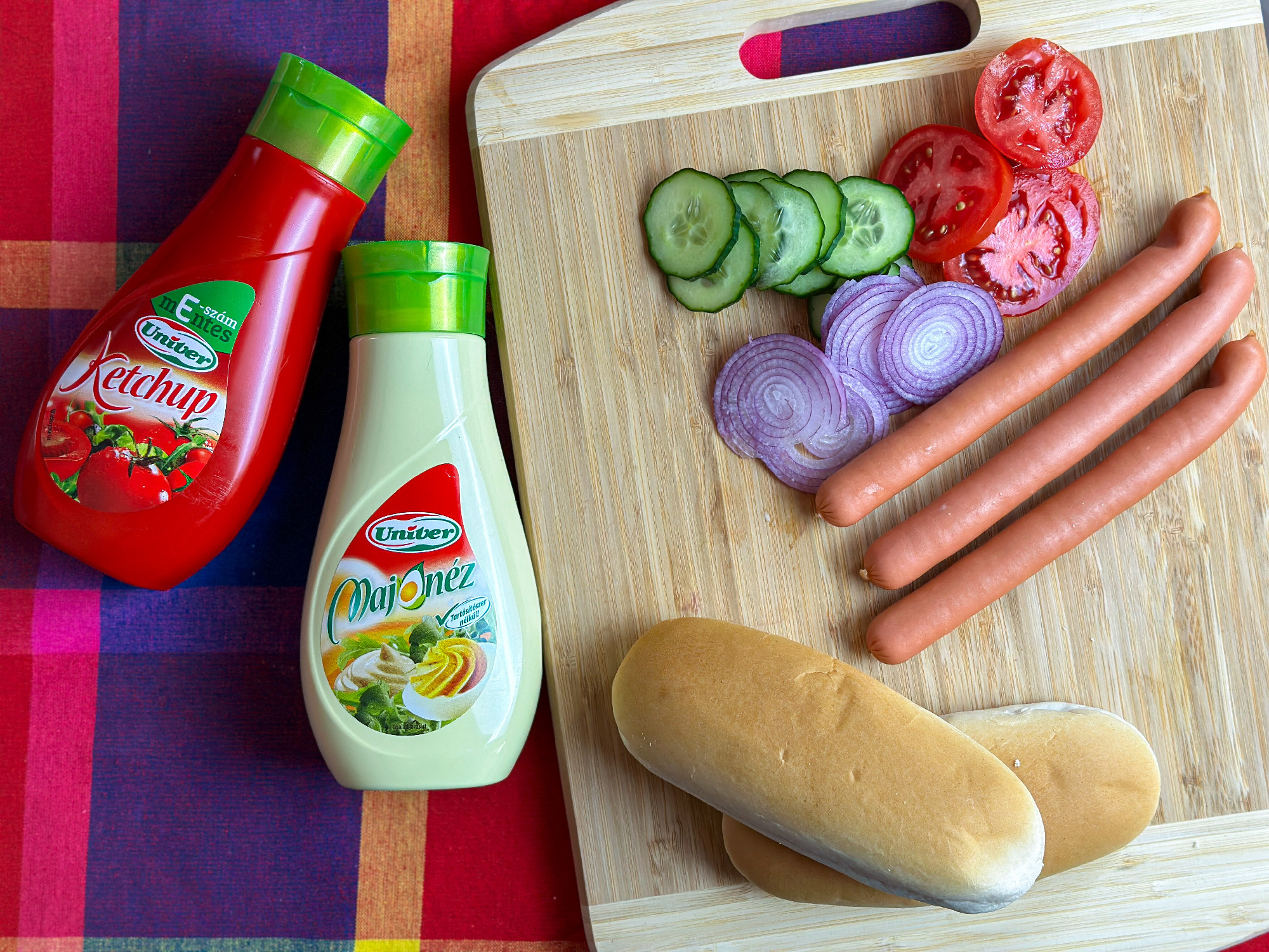 Ha langyosra hűltek, összeállítjuk a wimpit. A virslit megfőzzük, a zöldségeket vékonyra feldaraboljuk. A kifliket középen bevágjuk, majd nyomunk mindegyikbe ketchupot. Jöhet rá a virsli, a zöldségek, a majonéz és a reszelt sajt.