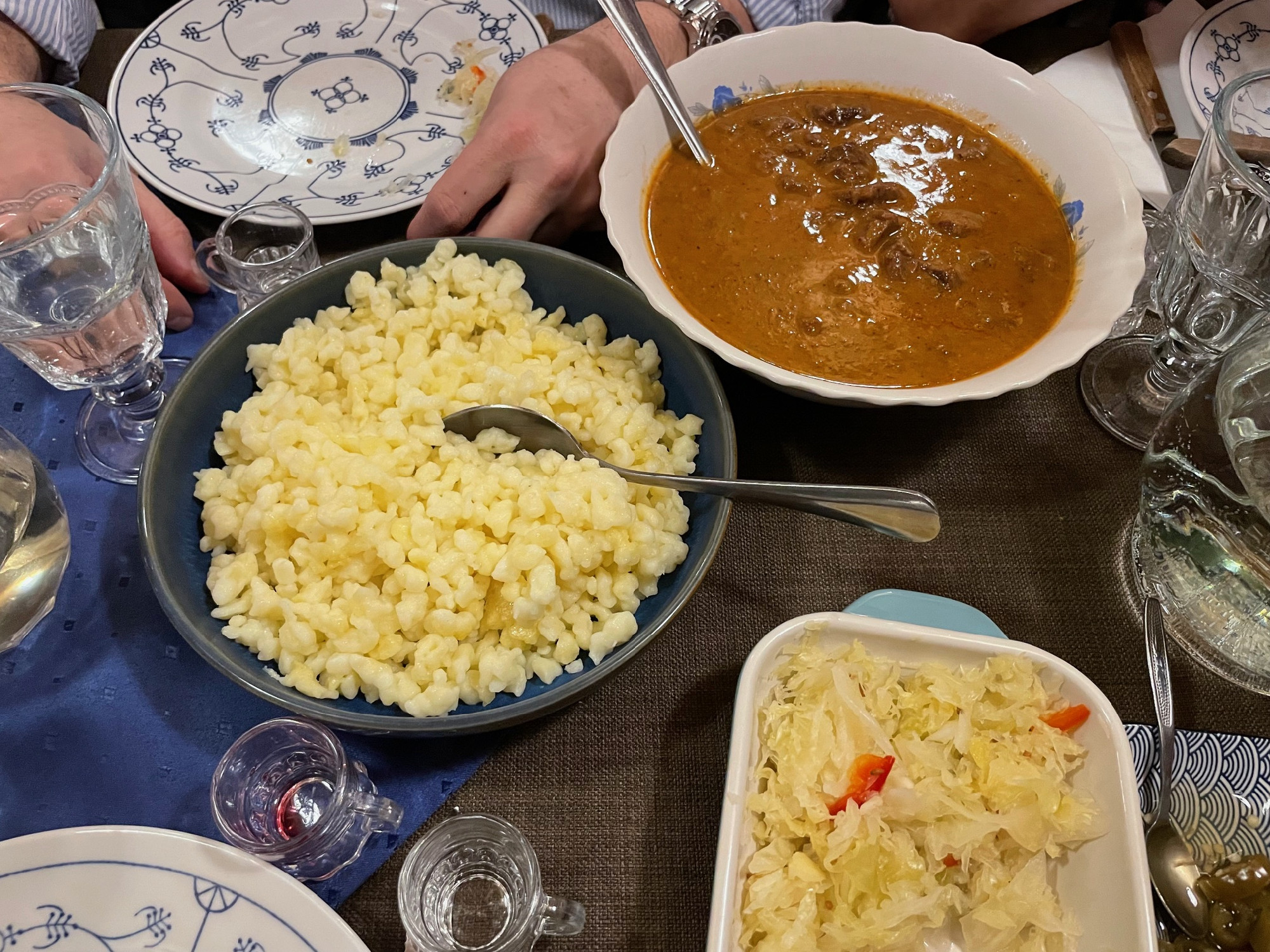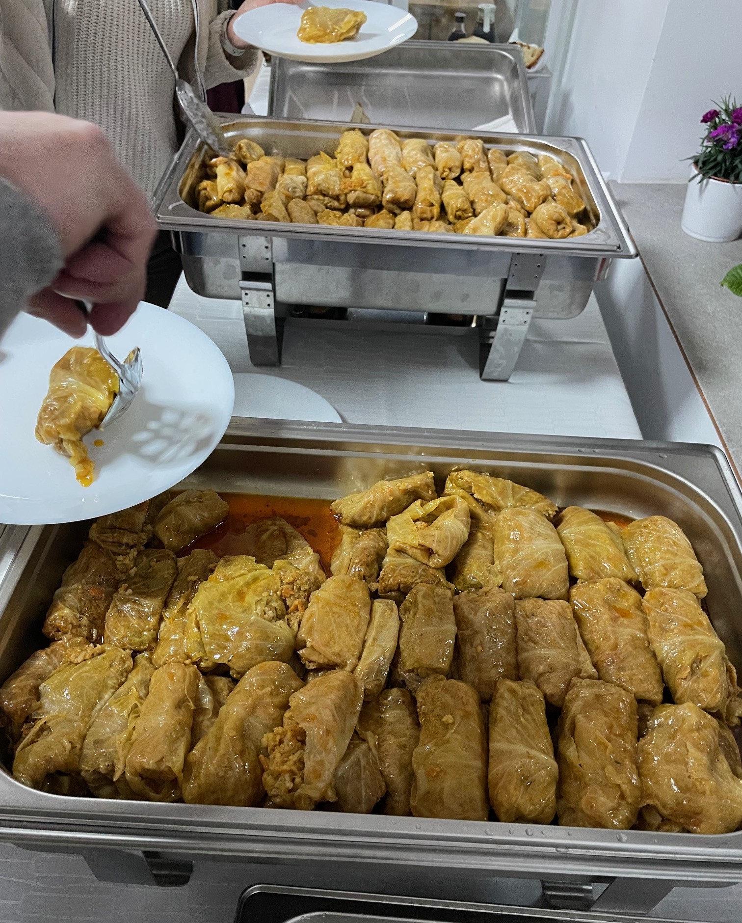 Hatalmas üstben főtt, mindenki szeme láttára. Egy pillanatra sem hagyták magára, kavarták, pufogott, hízott, és amikor kellően megpuhult, juhtúróval rétegezték. Végül a tányérokba jókora adag került, és aki kívánta, tejföllel öntözhette. Megkóstoltuk a böjtös káposztát, ami a környék hagyományos nagycsütörtöki étele. Kétféle is érkezett, hogy még nehezebb legyen a választás. A fazék aljában nagy csokor csombor vigyázta az egyforma töltelékeket, a savanyúkáposzta-levelek szégyenlősen betakarták tartalmukat. Akadt, aki aggódott, hogy talán a böjtös káposzta nem lakat jól, de tévedett. A töltelékben összeölelkező gabonafélék, a gomba, a hagyma, a zöldségek és a titkos fűszerezés olyan ízvilágot hozott létre, oly tartalmas volt, hogy nem csak megnyaltuk utána mind a tíz ujjunkat, de pukkadásig jól lakhattunk vele. Ehhez persze a frissen sült, vastag héjú pityókás kenyér is segített valamelyest.
