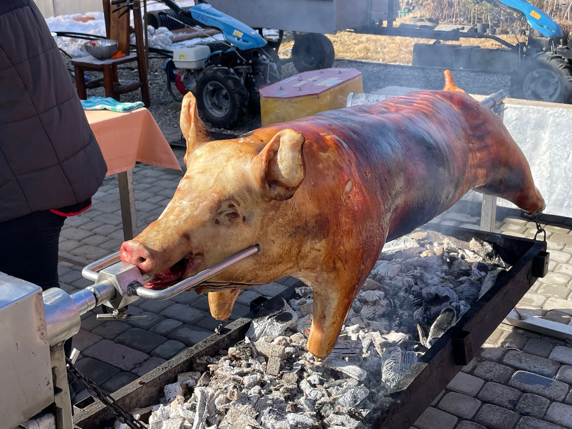 Szombaton malac sült nyárson, hajnalban került a parázs fölé, gondos előkészítést követően, csábító illatokat lehelve a környékre, hogy gyorsan meginduljanak a gyomornedvek. Előételként a megpirult malacbőrt hántották le a nyárson forgó pecsenyéről. A csíkokra vágott, ropogós malacbőr némi kenyérrel, savanyúval csak fokozta a vágyakat, amelyeket aztán az elkészült malacsült volt hivatott beteljesíteni.