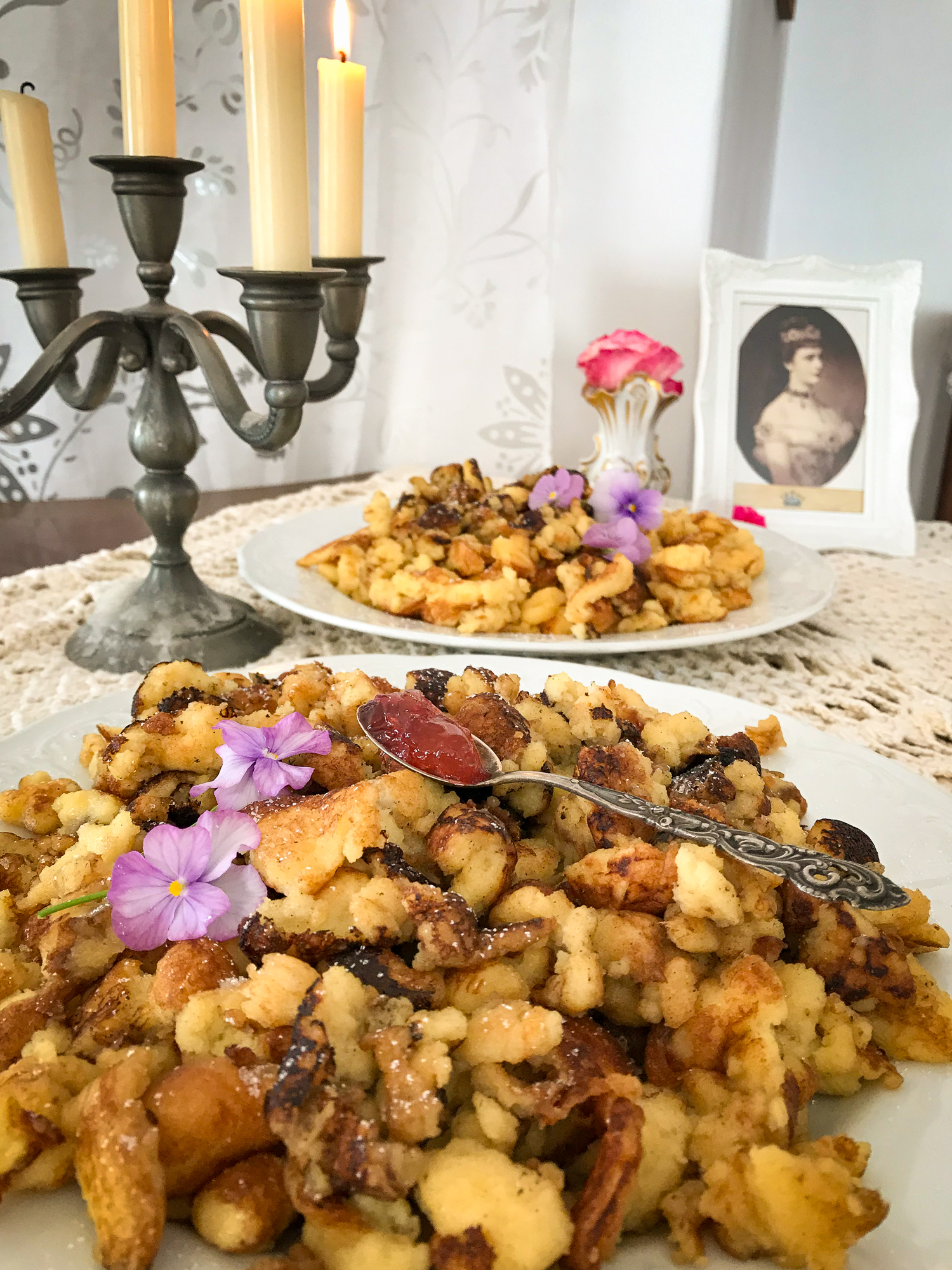 A császármorzsa születésének legendája Salzkammergutba, Bad Ischlbe röpít. Az Osztrák-Magyar Monarchia uralkodó családja szívesen időzött itt, a hatalmas hegyek övezte bájos falucskában. Ferenc József császár és felesége, Sisi, nyáron hosszan tartózkodtak Ischlben, sokszor túráztak, olykor betértek egy-egy hegyi pásztor kunyhójába. A legelők mellett éltek a sajtkészítők, a „Käser”-ek, akik saját készítésű sajttal, frissen fejt tejjel vendégelték meg az arra járókat. Ott készült a Käserschmarrn, vagyis a lisztből, tejből, tojásból kevert masszából, forró vajba csorgatott és aranyszínűre sütött eledel. Amikor elkészült, egyszerűen körbeülték a méretes serpenyőt, és abból kanalazták ki.