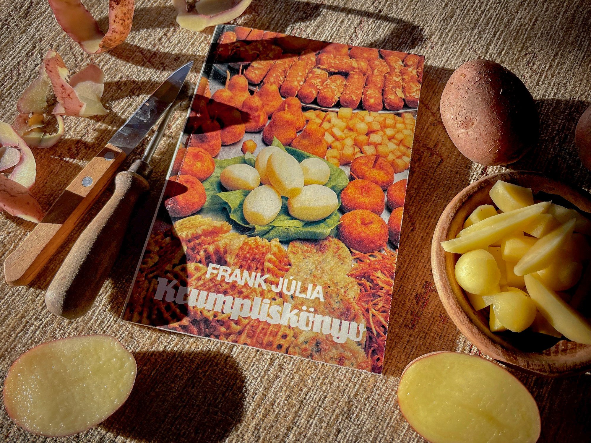 Frank Júlia Krumpliskönyve tulajdonképpen a Krumplis mese című költeménynek receptkönyv-átirata. Krumplitörténelem és 170 oldalnyi burgonyás recept, amely valóban összefoglalja mindazt, amit ma tudunk a burgonya által hozott kulináris örömökről. Valljuk be, a házi étlapon a burgonya nem mutatkozik meg olyan sokféle formában. Ha jól belegondolunk, két kezünkön meg tudjuk számolni, mit készítünk rendszeresen krumpliból.