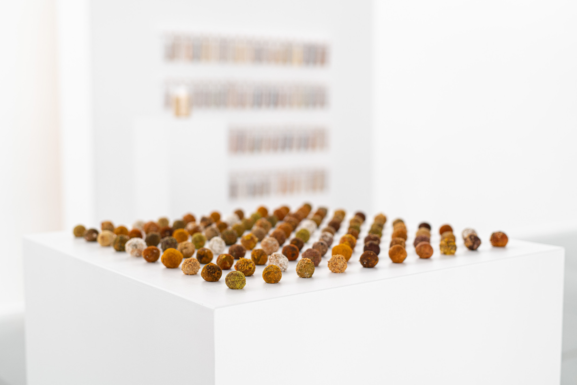 Sokat kerestem a megfelelő technikát, végül a meleglevegős aszalást-szárítást alkalmaztam, aminek segítségével konkrét ételeket konzerváltam. Egy tál borsólevest vagy pörköltet nokedlivel, és ezt por alakúvá szárítva egy kémcsőben helyeztük el. A kiállításon 100 ételt rendeztünk ilyenformán egy íz-albumba. Ha tehát lát valaki egy bordó színű port, akkor azt megkóstolva éri a meglepetés, hogy valójában meggyes rétest eszik.”
