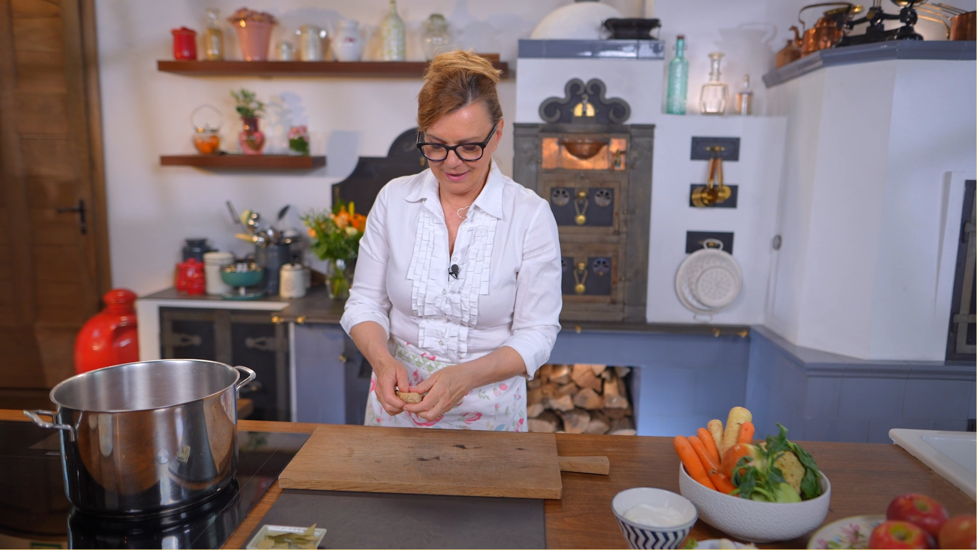 Amikor a hús már majdnem megpuhult, hozzáadjuk a leveshez a zöldségeket is.