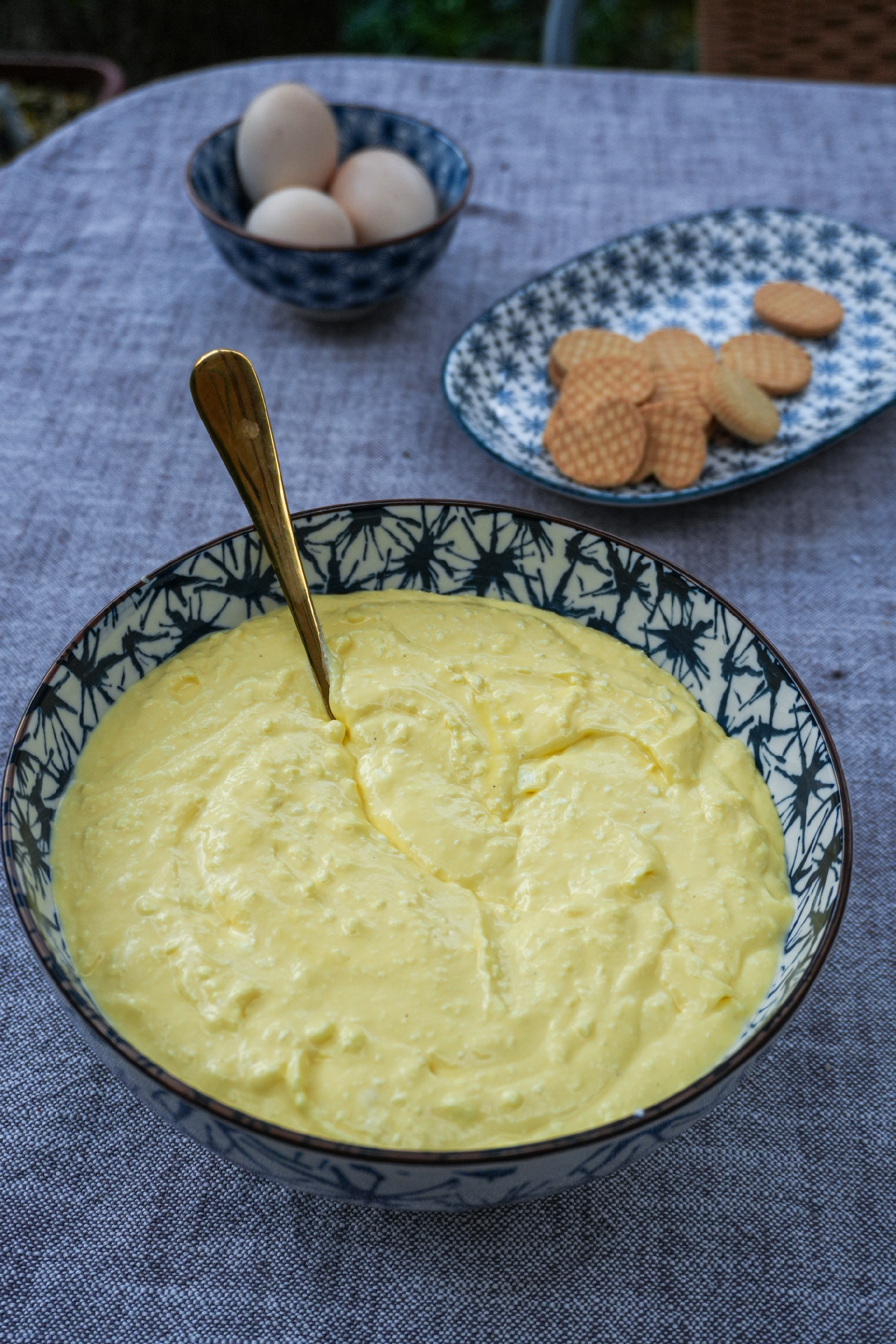 A túrót egy szitán áttörjük, vagy botmixerrel átdolgozzuk. Adunk hozzá két evőkanál porcukrot is. A tojások sárgáját habosra kikeverjük a négy kanál kristálycukorral, majd hozzáadjuk a vaníliát, az áttört túrót, a tejfölt és az olvasztott vajat. A tojásfehérjékből a cukorral krémes habot verünk, majd óvatosan beleforgatjuk a túrós masszába. A kekszes alapra öntjük, majd 165-170 fokon, légkeverésen sütjük 60-70 percet.