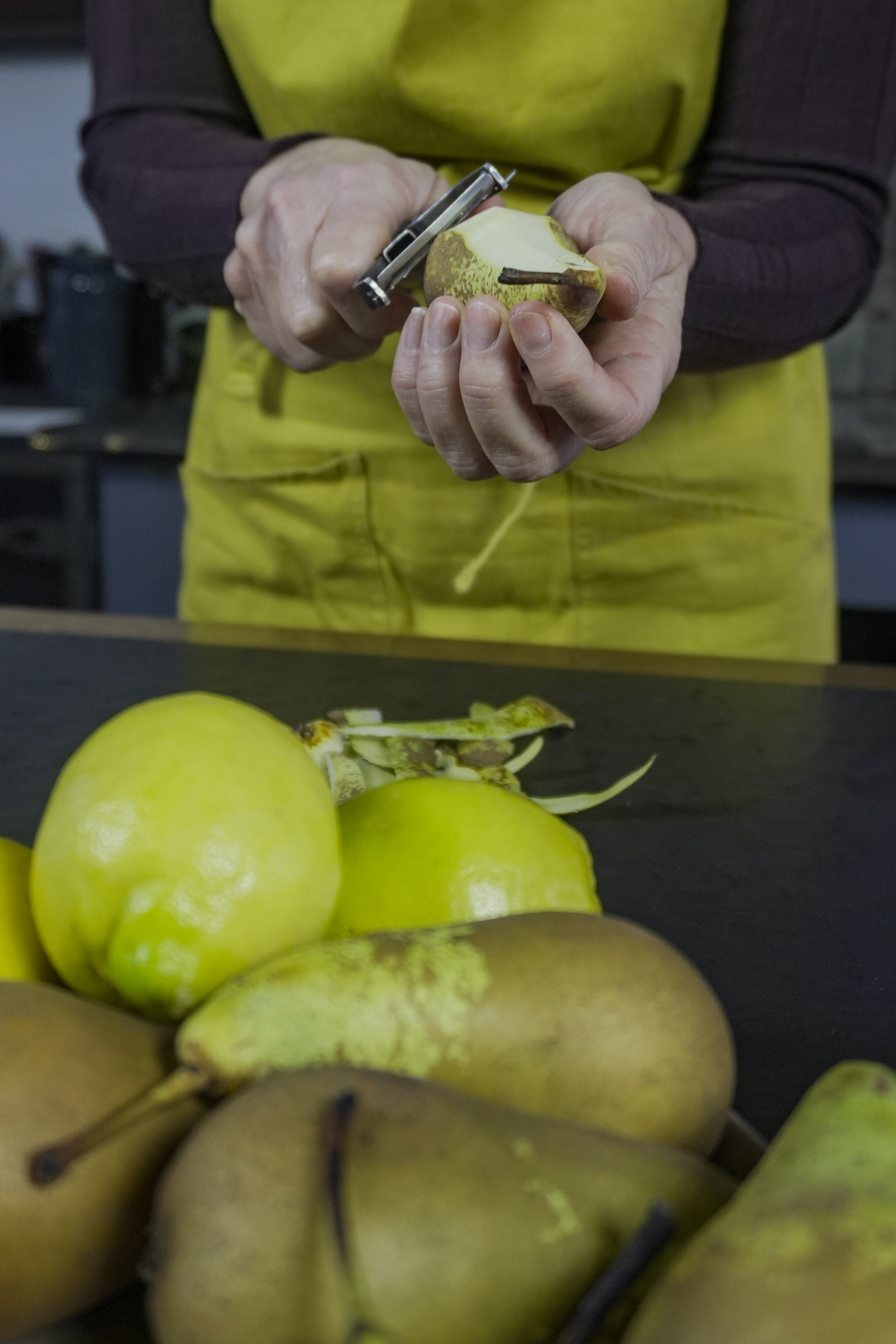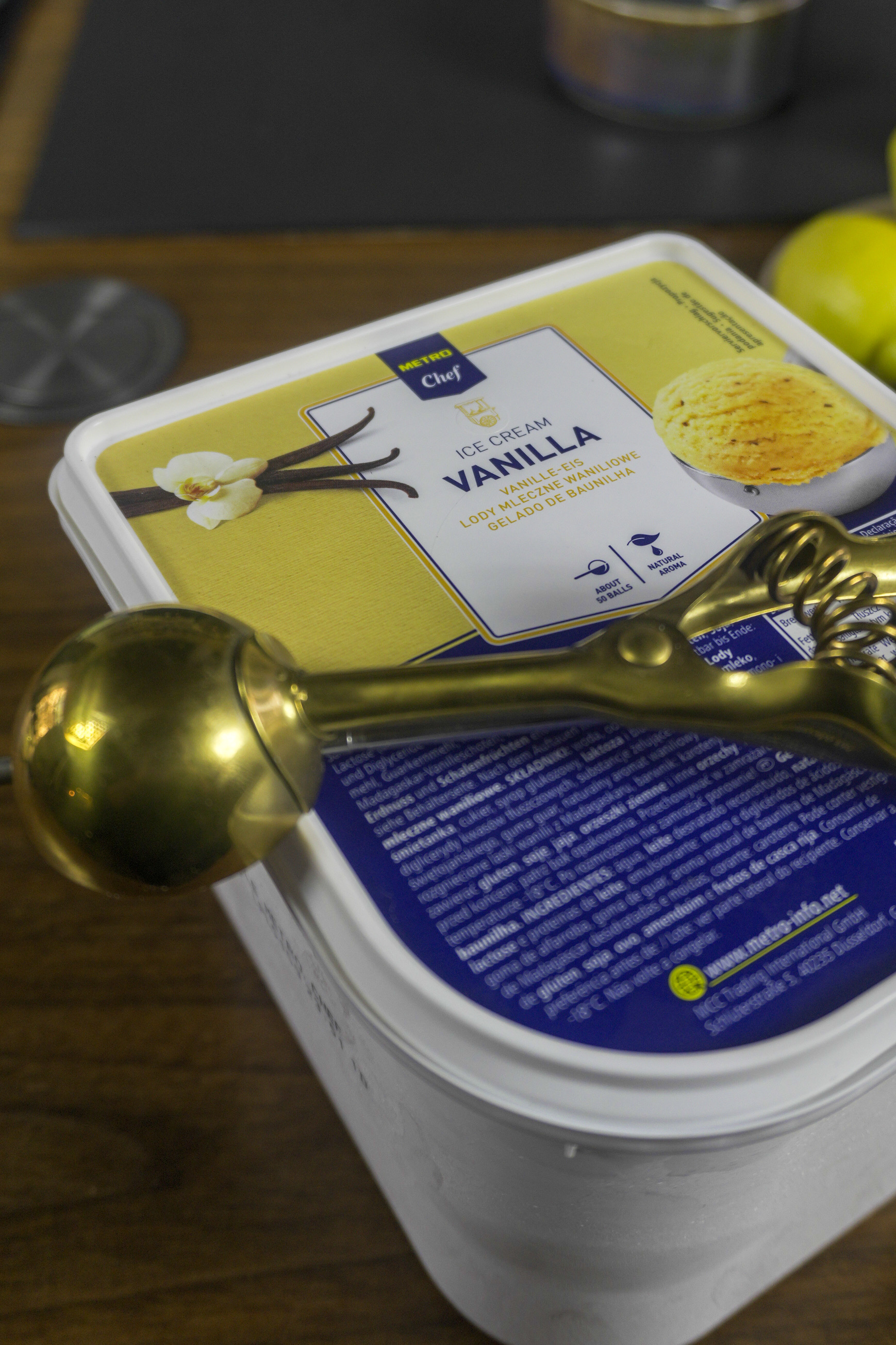 Amikor elkészültek, a körtéket egy csinos tányérra tesszük, és még melegen tálaljuk néhány gombóc vaníliafagylalttal.