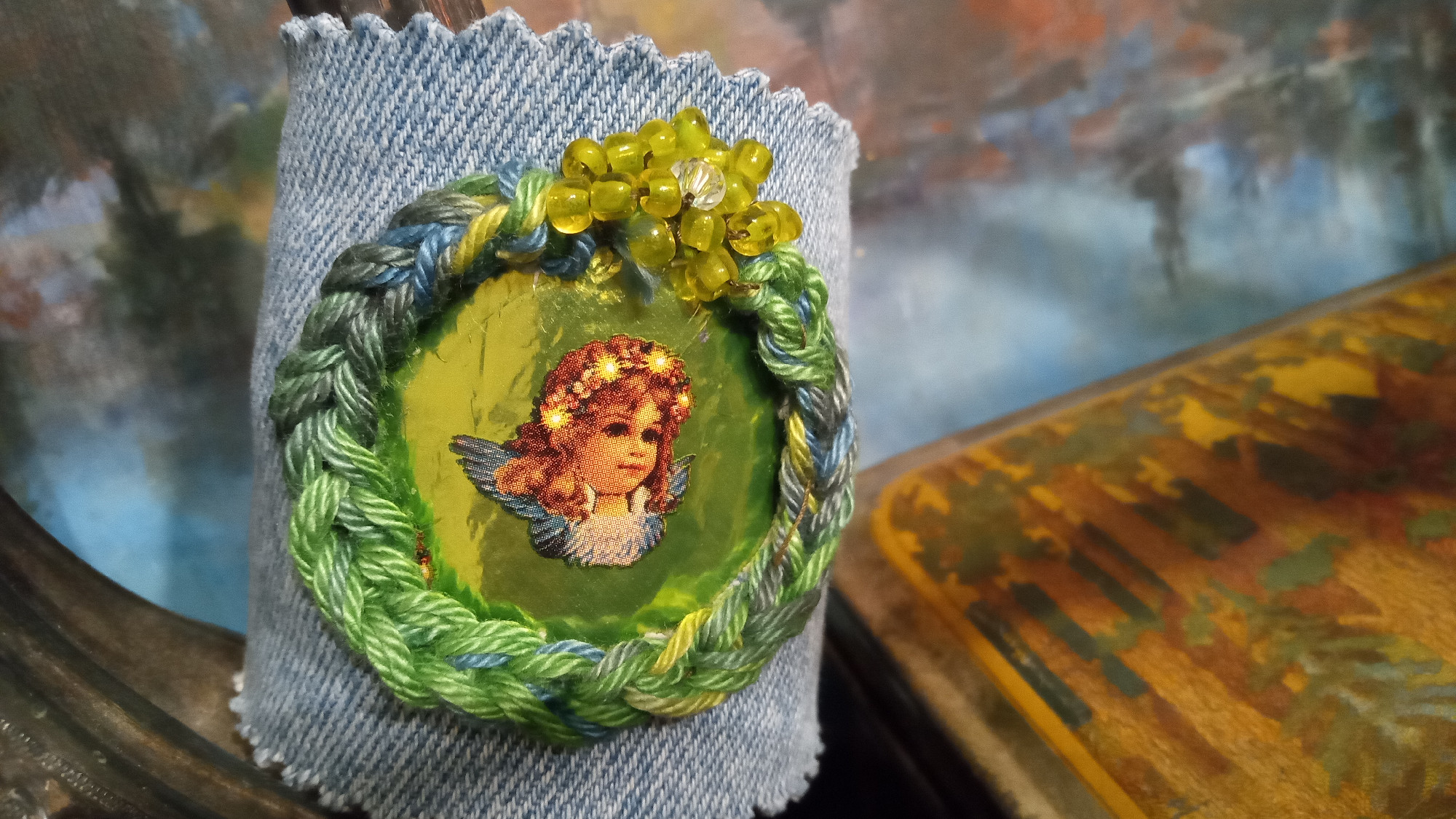 Tavaly ezt az angyalkás karkötőt a karácsonyi hangulatra terveztem. Kifejezetten azért vettem ilyen szaloncukrot, mert beleszerettem ebbe a kedves arcú angyalba. A karkötő elkészítése pedig hihetetlenül egyszerű. A csuklóméretemre vágtam egy darab farmert, duplán, mert a két réteg közé ragasztottam a szaloncukorpapír angyalkáját.