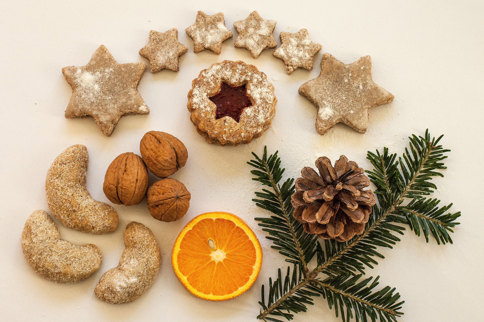 A szekrény tetején ott sorakoztak a pirospofájú Batul almák, amit nagyapám idejében még a szénaboglyában őrizgettek télire, de amikor már nem voltak állatok, széna sem volt, így a kincset érő, zamatos Batul és az összetéveszthetetlen Leányka illatának keveréke csapott meg, mikor beléptem. Nagyanyám első aprósüteményei a diósok és a mézesek voltak: ezeket készítette elő leghamarabb, mert ezek álltak el hosszabb ideig. Az „első ház”, vagyis a tiszta szoba asztalán szőttes asztalkendővel kibélelt kosarakban vártak a linzerek, kiflicskék és mézeskalács csillagok, majd helyet kért a bejgli, a zserbó, a dominó, végül a mazsolás kalács és a krémesek. El ne felejtsem a lényeget: az előre elkészített és gondosan becsomagolt szaloncukor és a habcsók, az előre megfestett arany- és ezüstdió is ezen az asztalon várta, hogy párokba fűzve felkerülhessen a fára. Karácsony szombatjára, amikor a töltött káposzta rotyogott a fazékban és nagyanyám a karácsonyfát díszítette már, apránként előkerültek a díszek és az első házból az alma, a dió, a habcsók és a szaloncukor is, na meg a legszebb mézeskalács-csillagok.