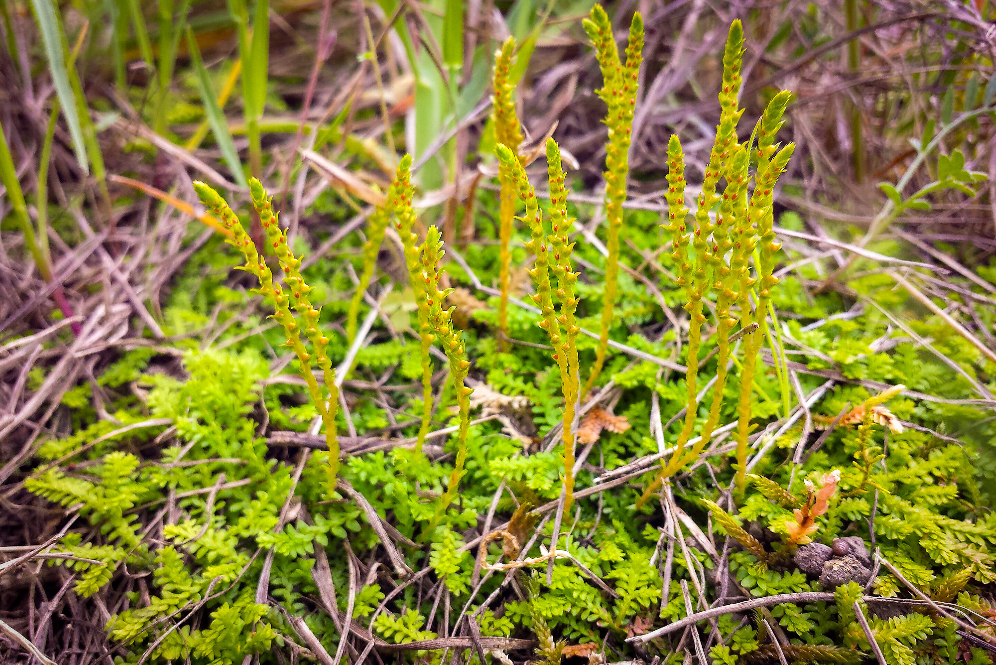 Hajtásai elágaznak és hosszan kúsznak: a meddő hajtások hossza pedig változó: általában 20–25 cm. A levelei aprók (alig 2-3 mm hosszúak), lekerekített háromszög alakúak és hártyaszerűek. Felálló sporofillumfüzérei sugaras szimmetriájúak, de akár villásan elágazók is lehetnek, hosszuk pedig 2–4 cm. A sporofillumfüzér a harasztok (például zsurlók, páfrányok, korpafüvek) egyes csoportjainál előforduló spóratermő levelek füzérszerű elrendeződését jelenti.